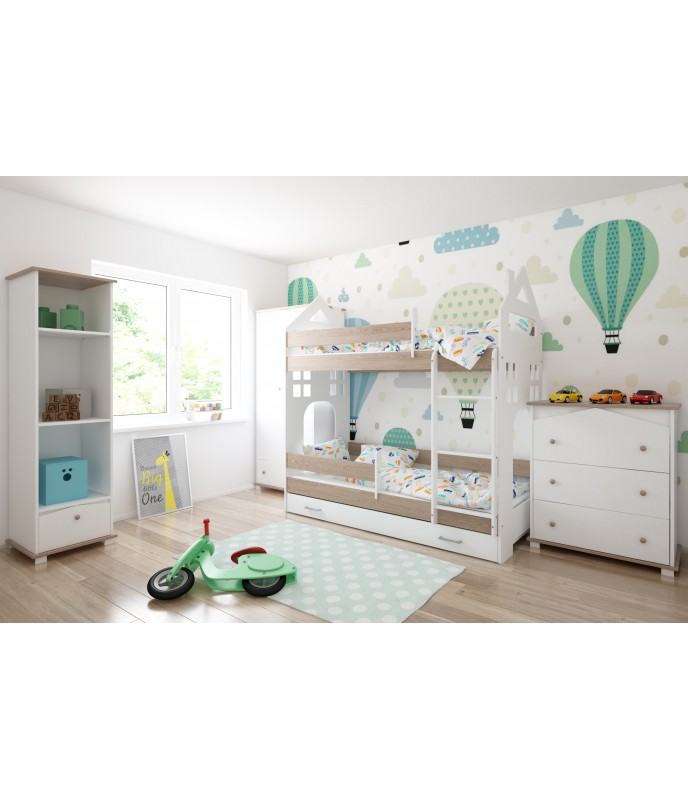Vytvorte pre svoje deti priestor, kde sa spája spánok a radostná hra. Naša pôvabná poschodová posteľ v tvare domčeka nie je len kusom nábytku, ale stredobodom detského vesmíru. Jedinečný dizajn s oknami a baldachýnmi premení izbu na útulnú ríšu zázrakov a každé zaspávanie sa stane veľkým dobrodružstvom. Je to perfektné riešenie, ktoré šetrí miesto bez toho, aby obetovalo výnimočný štýl.