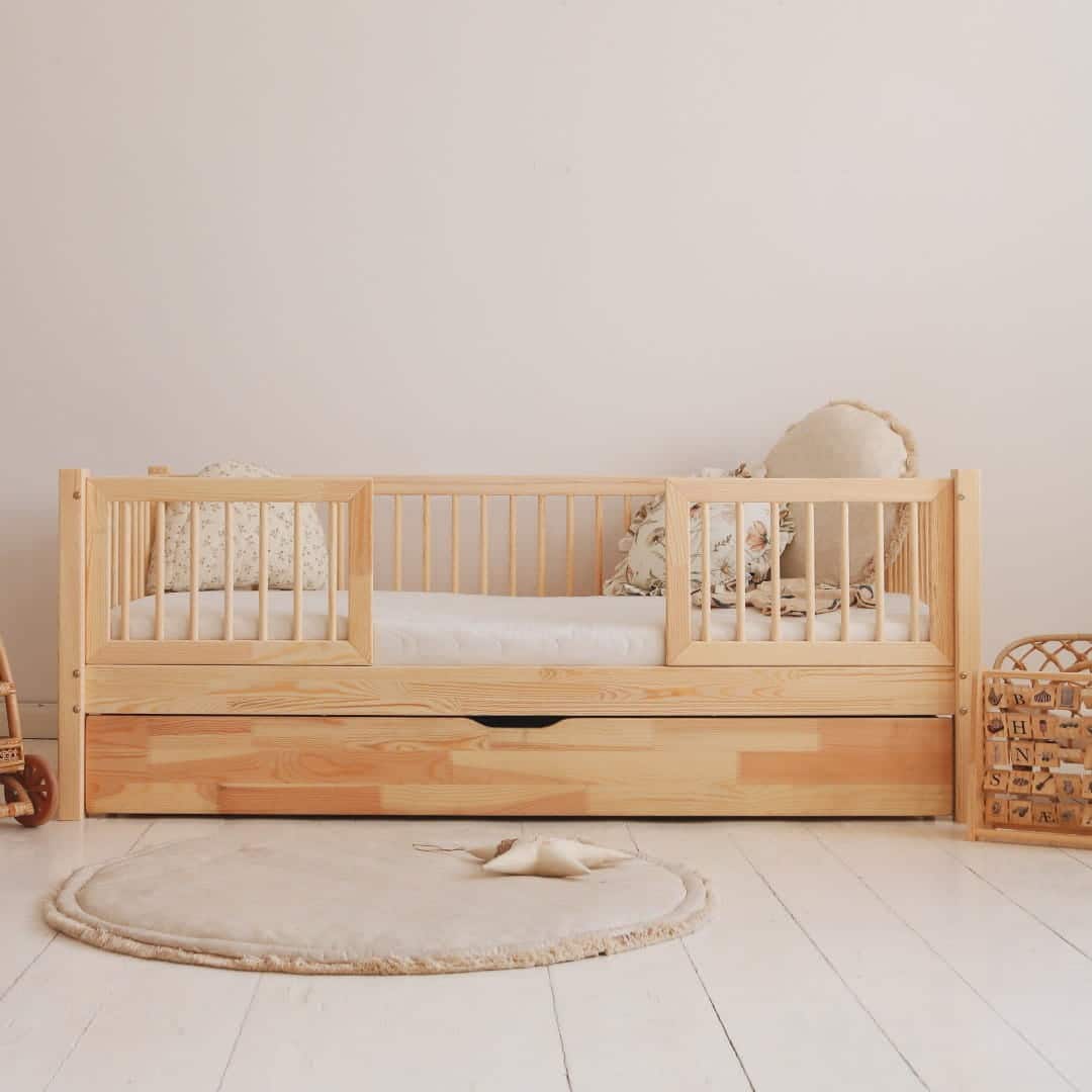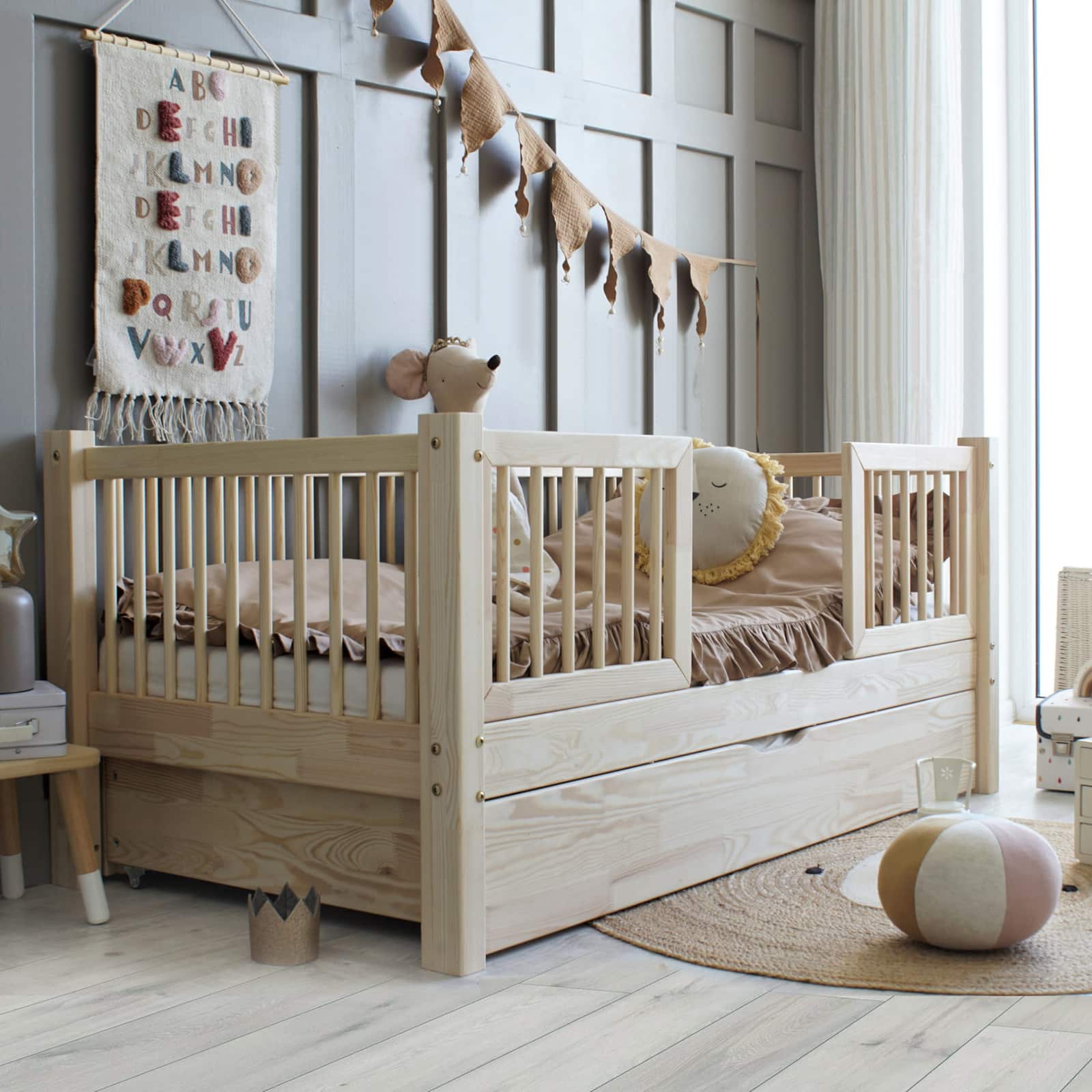 Vzhľadom na 10 cm hrubý matrac do postele dieťa spí vo výške 37 cm.
