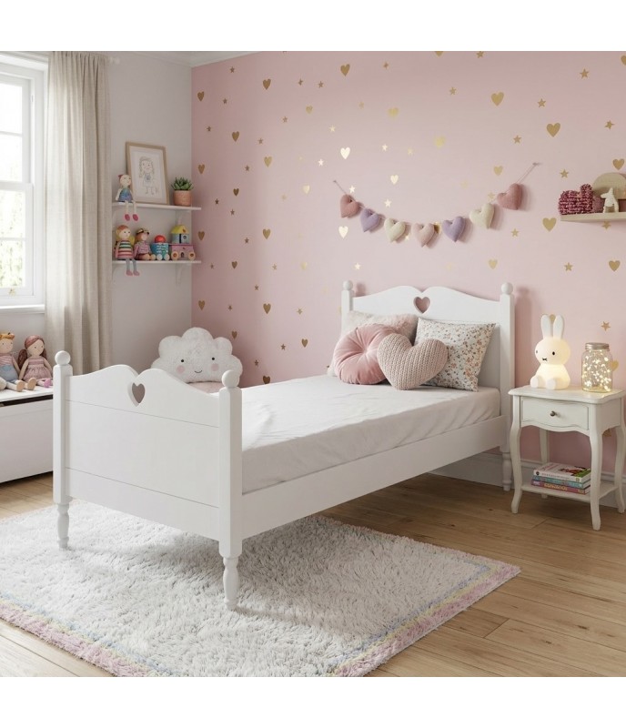 Hľadáte kus nábytku, ktorý nevyjde z módy ani po dvoch sezónach? Model BEA v plnej veľkosti 90×200 cm je perfektnou voľbou pre izbu malého snílka aj štýlového tínedžera. Kombinácia sústružených nôh z masívneho dreva a decentného motívu srdca vytvára nadčasový dizajn.
