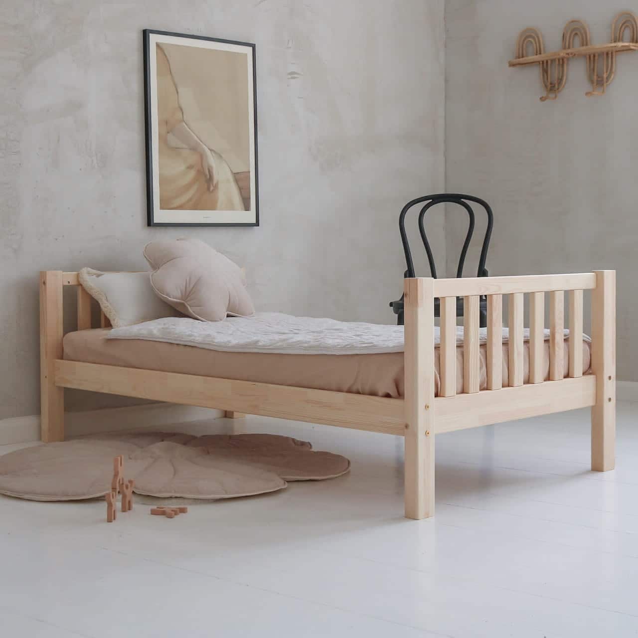 Pri kúpe postele BASIC CLASSIC obdržíte kompletný rám postele s matracovým roštom, zvislými nosníkmi a sadou zábradlia viditeľnou na fotkách.