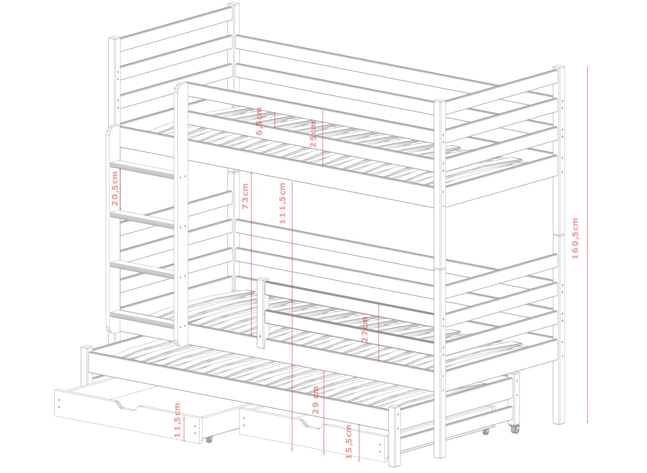| Výška postele | 160,5 cm |