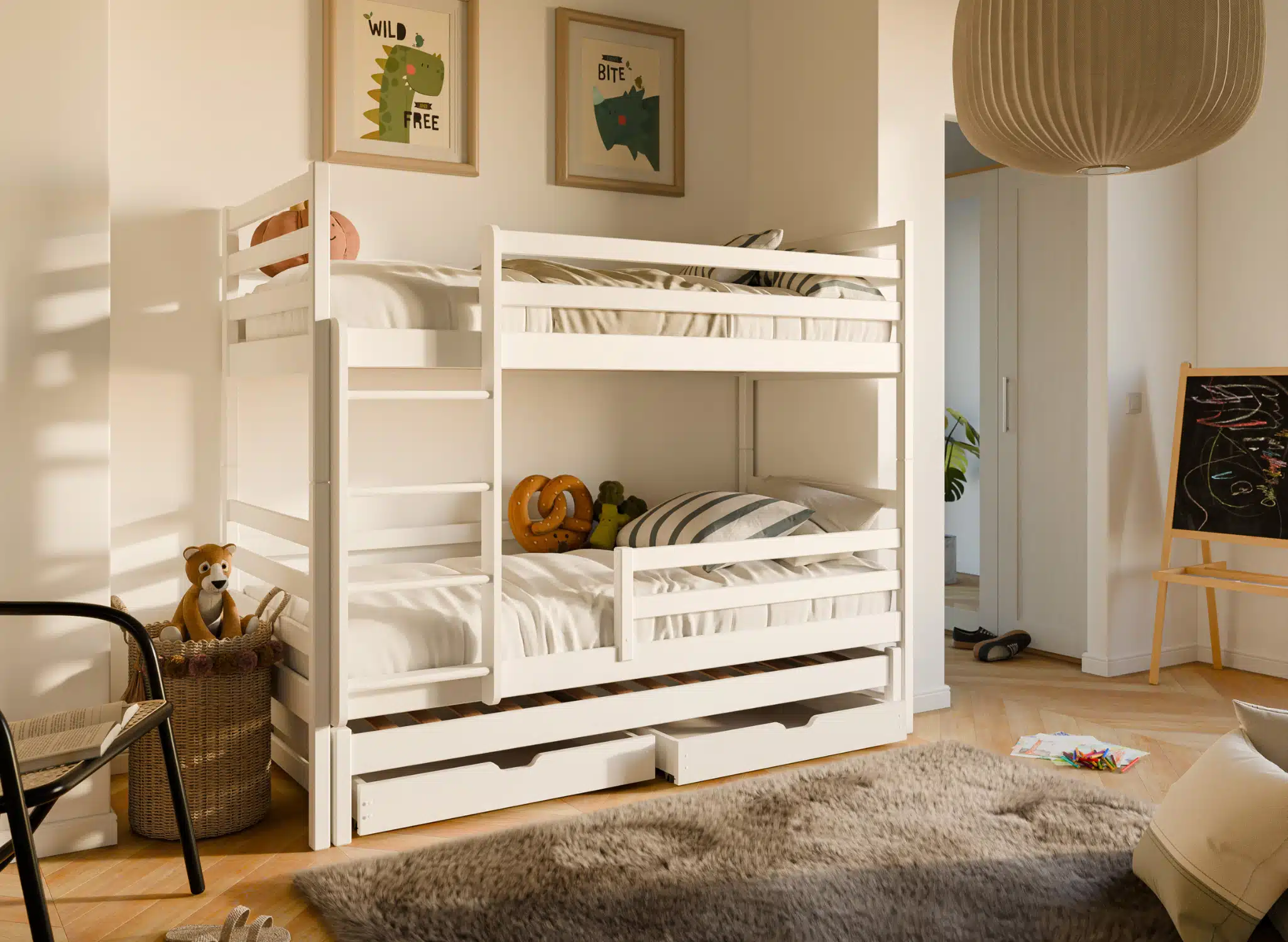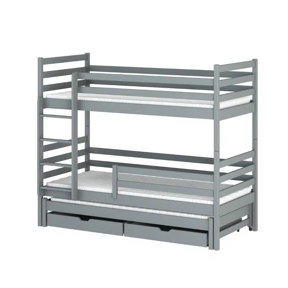Pri navrhovaní izby pre svoje deti sa snažíte splniť všetky ich sny. Poschodová posteľ LAKY má možnosť ľubovoľnej personalizácie. Rozhodnite, či detská posteľ LAKY bude mať zásuvky, postarajte sa tiež o správnu výšku bariérok a určte, kam umiestniť pohodlný rebrík. Správne prispôsobenie poschodovej postele LUK zabezpečí, že sa na roky stane obľúbeným miestom na odpočinok vašich detí. Samozrejme, zásuvky detskej postele LAKY alebo správny matrac sú prvky, na ktoré kladiete dôraz. Avšak nič nie je pre vás také dôležité ako bezpečný a pokojný spánok vašich detí. Nám záleží predovšetkým na bezpečnosti našich najmenších zákazníkov. Preto sme vytvorili poschodovú posteľ LAKY, ktorá spĺňa aj tie najprísnejšie požiadavky rodičov.
