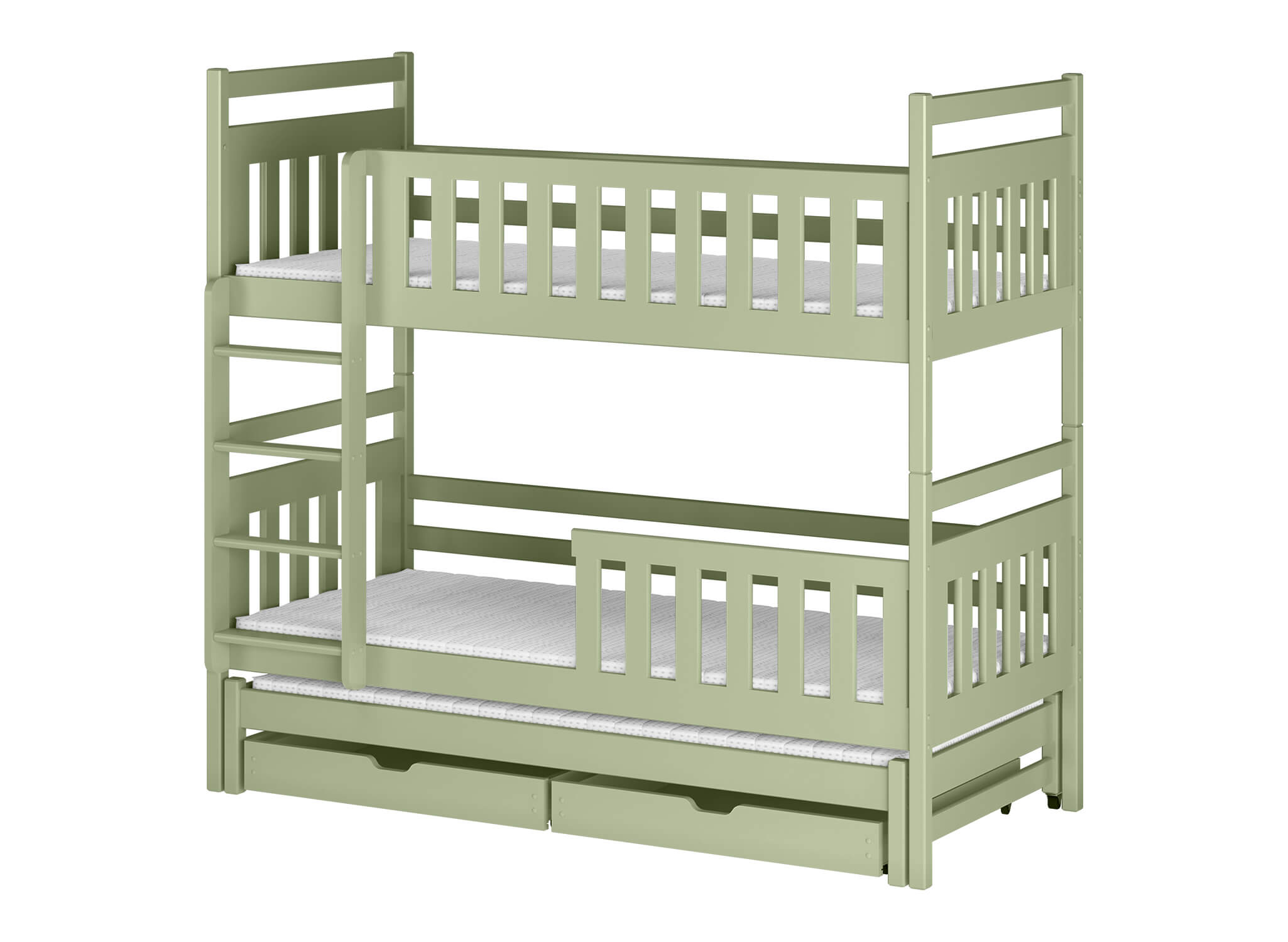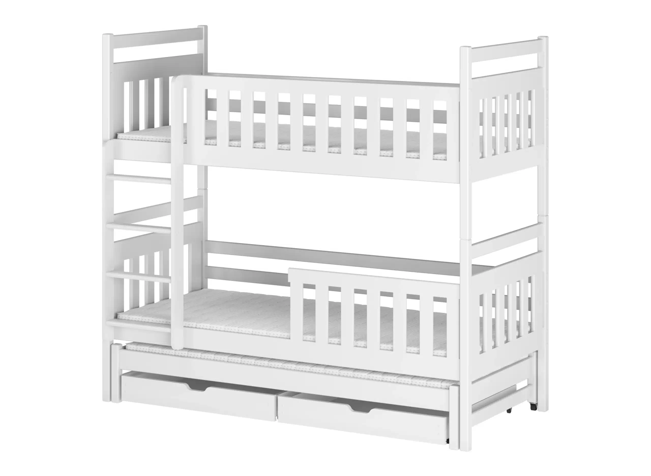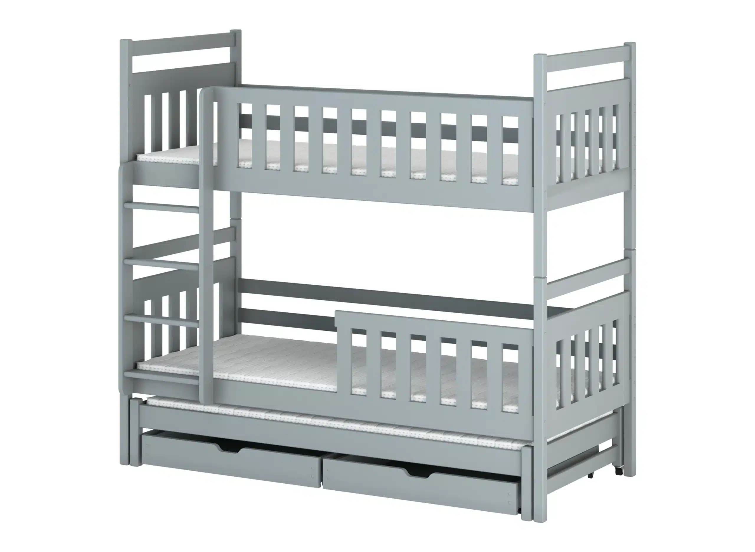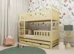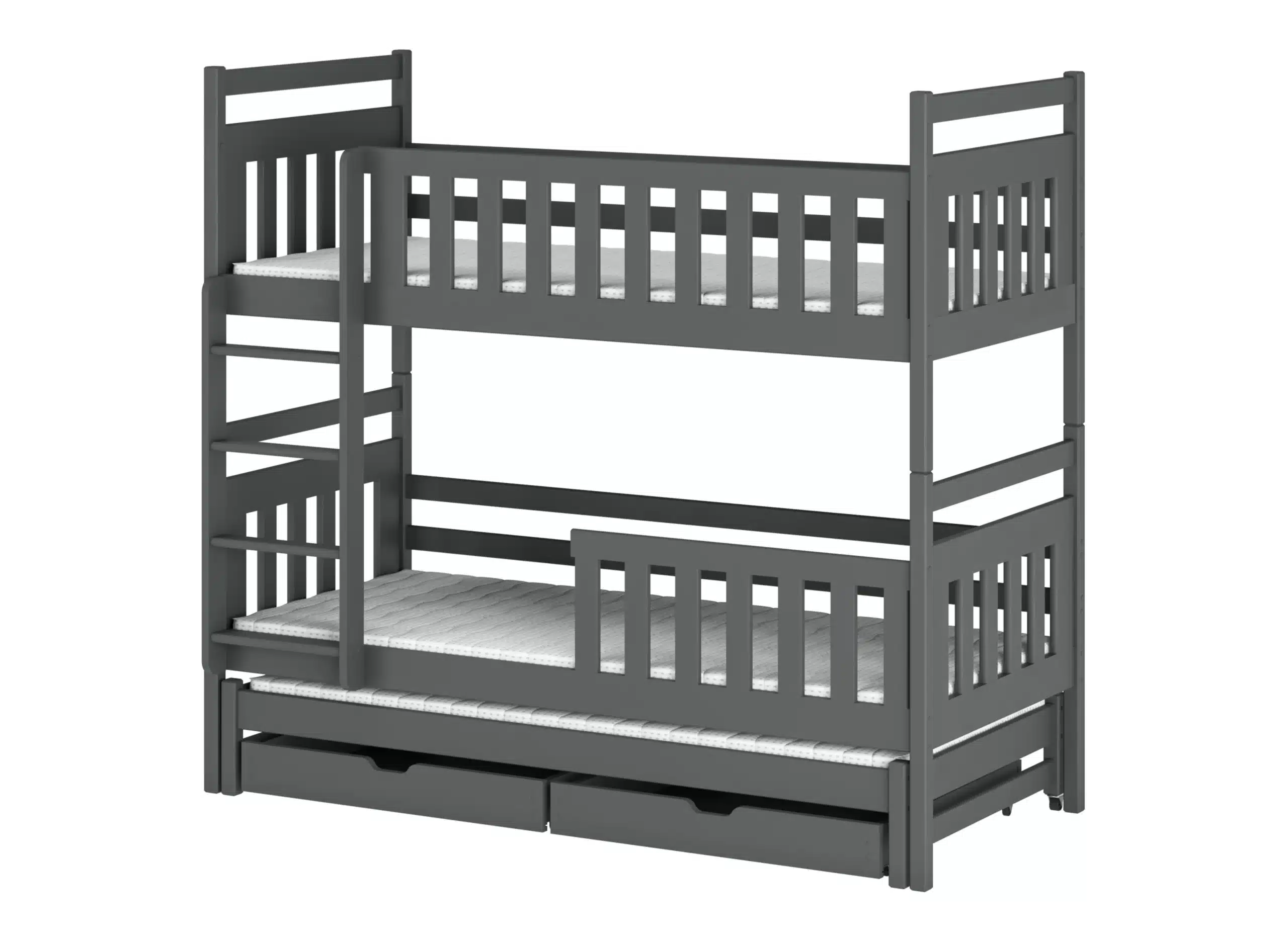 Poschodová posteľ LARY je vyrábaná s dôrazom na každý, aj ten najmenší detail. Materiály, ktoré používame, sa vyznačujú najvyššou kvalitou, pretože chceme zabezpečiť vášmu dieťaťu zdravý a pokojný spánok. Poschodová posteľ LARY je zaujímavou voľbou do detskej izby zariadenej v klasickom štýle. Klasický rám poschodovej postele LARY bude tvoriť zaujímavý akcent v kráľovstve vašich detí. Borovicové drevo zabezpečené antialergickou farbou zaistí trvácnosť poschodovej postele LARY na dlhé roky.LARY je trojposchodová posteľ, ktorá splní potreby aj tých najnáročnejších detí. Ochranné bariérky sú dostupné v dvoch verziách – pevne namontovanej alebo odnímateľnej. Tá druhá možnosť vám umožní odmontovať bariérku počas dňa, keď sa deti chcú hrať. Môžete ju nasadiť na noc, aby bolo vaše dieťa počas spánku v bezpečí. V poschodovej posteli LARY je tiež miesto na pohodlný matrac na vysúvacej plošine. To je zaujímavá voľba, ak máte deti v podobnom veku alebo ak často prijímate hostí.