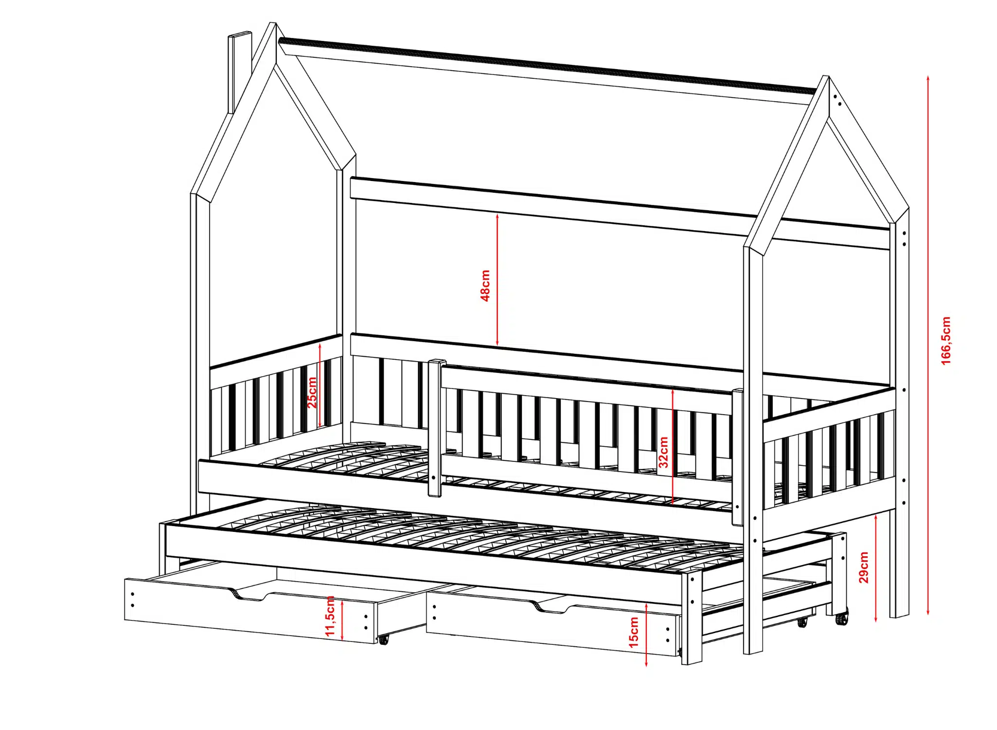 Ktoré dieťa nesníva o posteli v tvare domčeka? S jej pomocou vytvoríte rozprávkovú scenériu v detskej izbe, ktorej neodolá žiadne dieťa. A to ešte nie je všetko. Starostlivo prepracovaná a skonštruovaná s ohľadom na zdravý spánok, detská posteľ domček MONKEY ponúka maximálny komfort. Vyrobená z najkvalitnejších surovín, je mimoriadne pevná a poskytuje ochranu vašim deťom počas spánku a hry. Detská posteľ domček MONKEY má tiež druhý výsuvný priestor na spanie. To je šanca na zabezpečenie krásnych snov pre dvoch súrodencov!