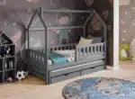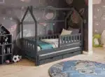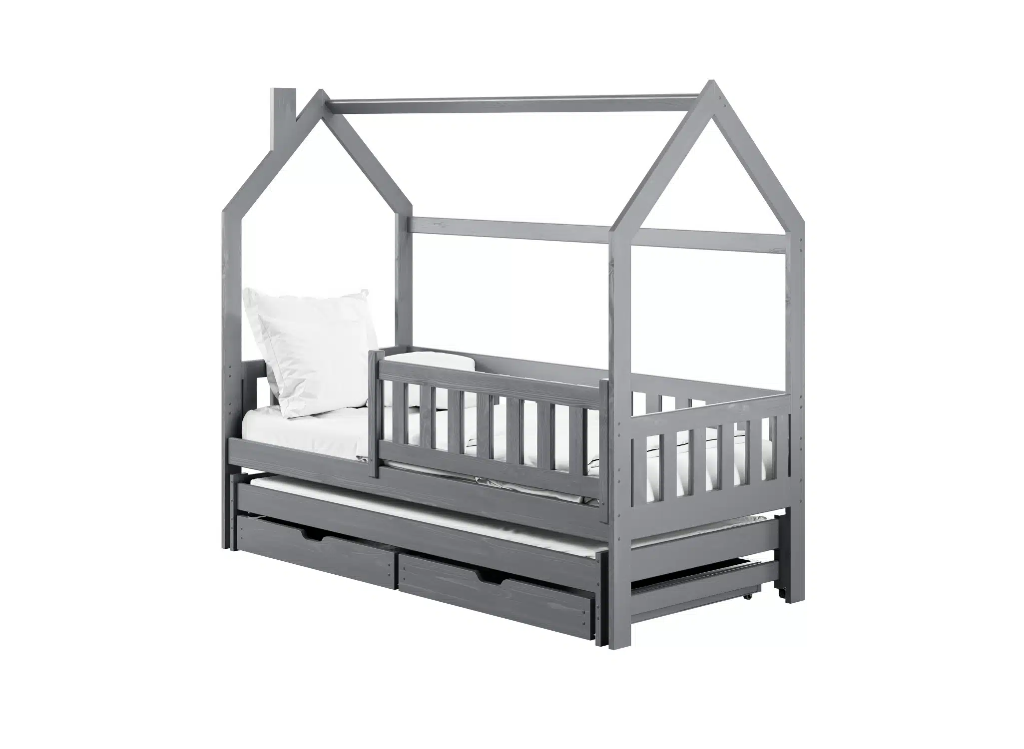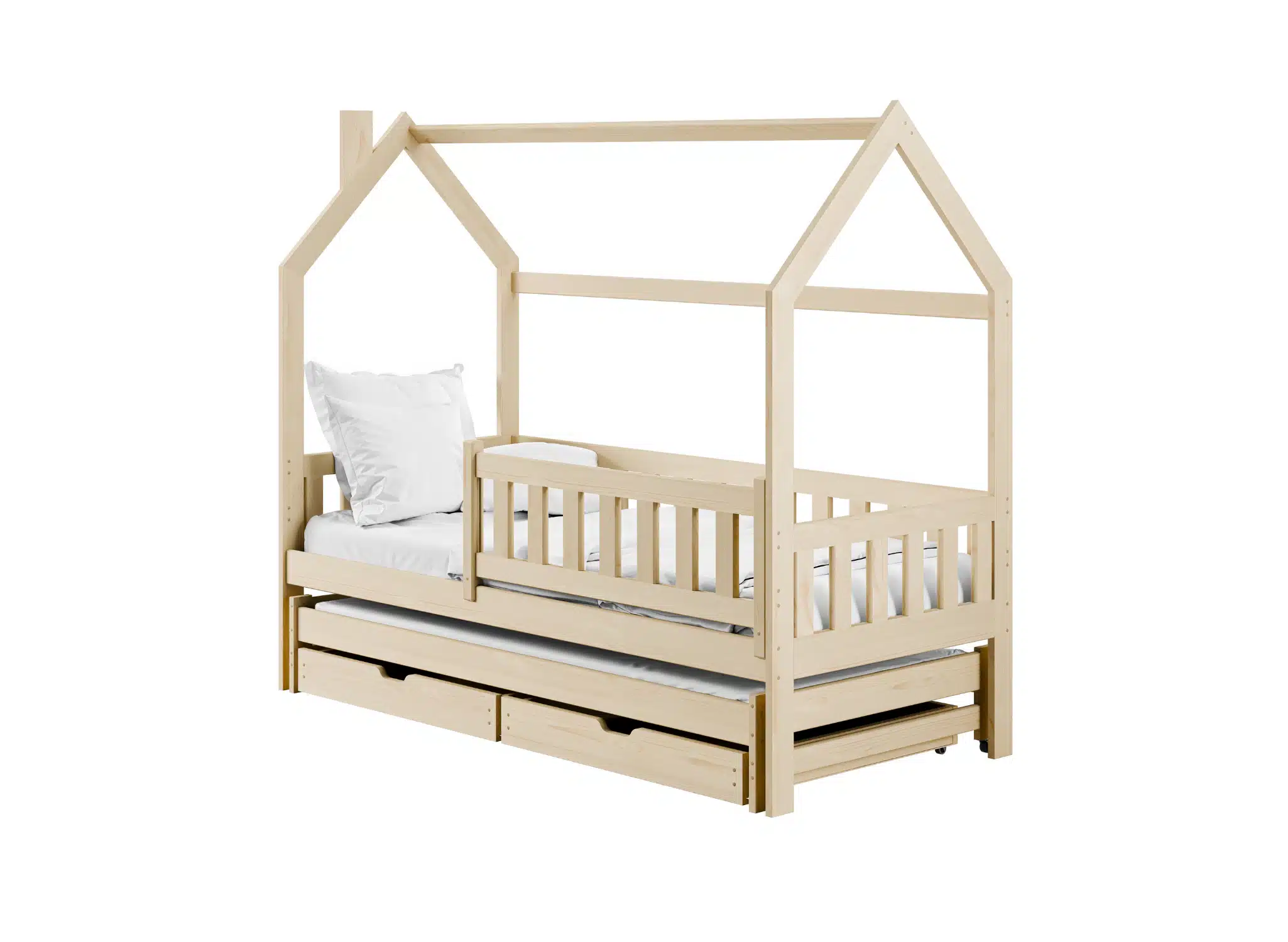 Detská posteľ domček MONKEY je ponuka, ktorá nadchne všetkých malých miláčikov. Je to jedinečný nábytok, ktorý nielen očarí svojim rozkošným vzhľadom v tvare domčeka, ale aj funkčnosťou a komfortom, ktorý ponúka. Detská posteľ domček MONKEY ponúka niečo dobré pre každého. Vyrobená z pevných borovicových dosiek, ktoré sú navyše zabezpečené neutrálne zdravotne nezávadnými lakmi. Drevo je tiež surovina, ktorá má antistatické vlastnosti, čo je určite prínosné pre alergikov. Štýl detskej postele domček MONKEY sa vďaka jednoduchej konštrukcii a klasickým tvarom hodí do každej detskej izby. Je potrebné zdôrazniť, že detská posteľ domček MONKEY nie je len krásny dizajn v rozprávkovej forme, ale aj mimoriadne praktický nábytok. Vysúvacia časť umožňuje ušetriť veľa miesta počas dňa, keď jednoducho schováte výsuvné druhé lôžko. A to nie je všetko. Detská posteľ domček MONKEY má tiež praktické, priestranné zásuvky, ktoré môžete použiť na ukladanie hračiek, posteľnej bielizne, detského oblečenia alebo čohokoľvek iného. Aká úspora miesta!