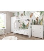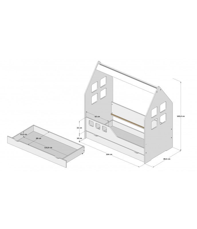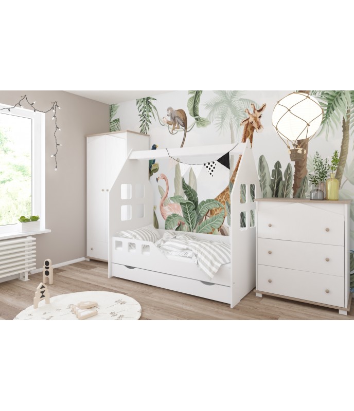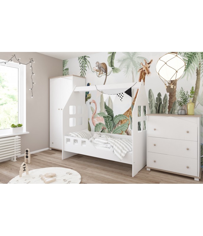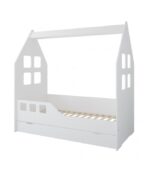 MONTESSORI je detská posteľ v tvare domčeka s jednou posteľou, ktorá kombinuje pohodlné miesto na spanie s priestorom na hranie a relax. Jej jednoduchý tvar a biela farba z nej robia perfektný doplnok do každej detskej izby.