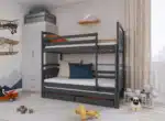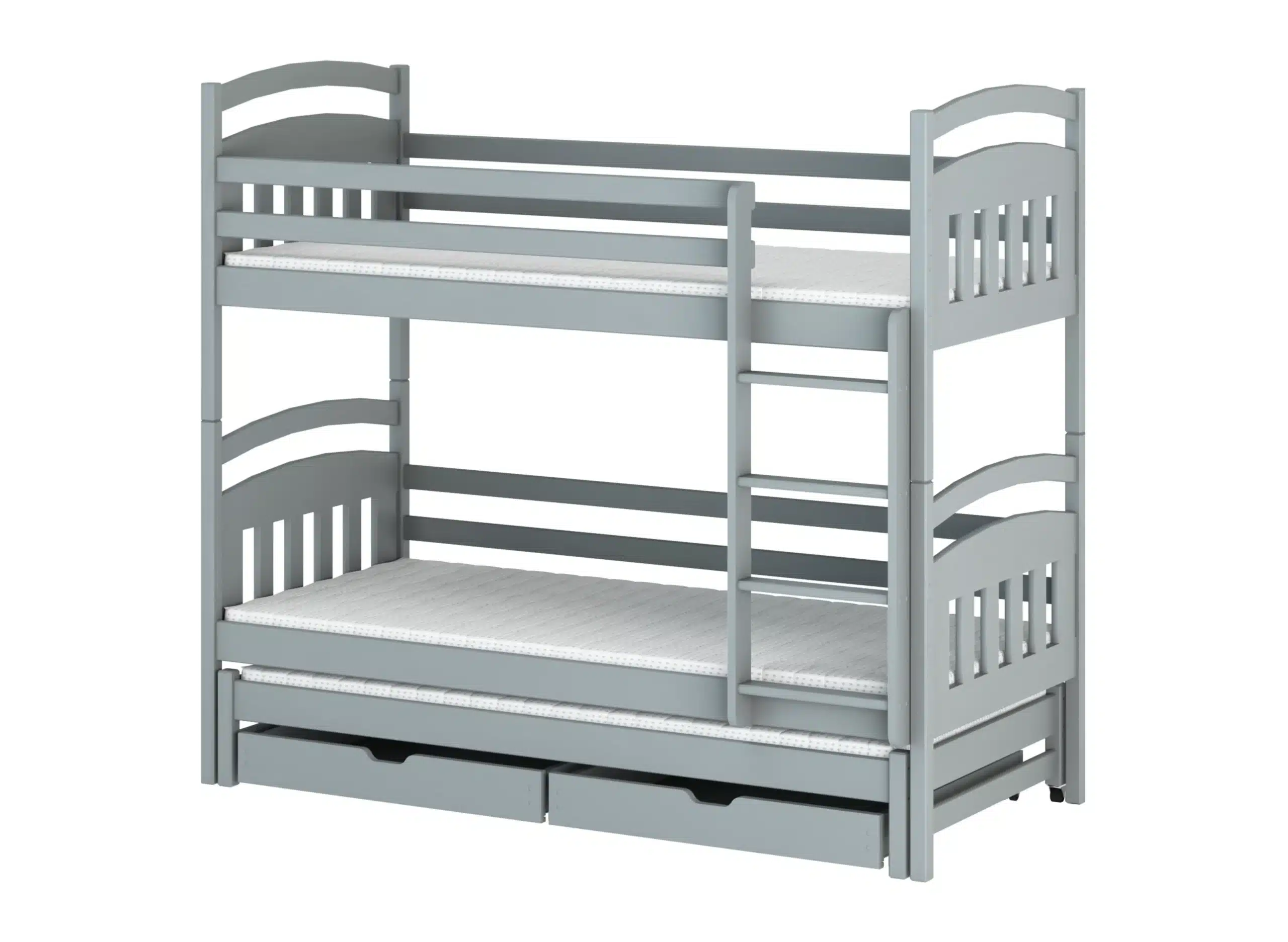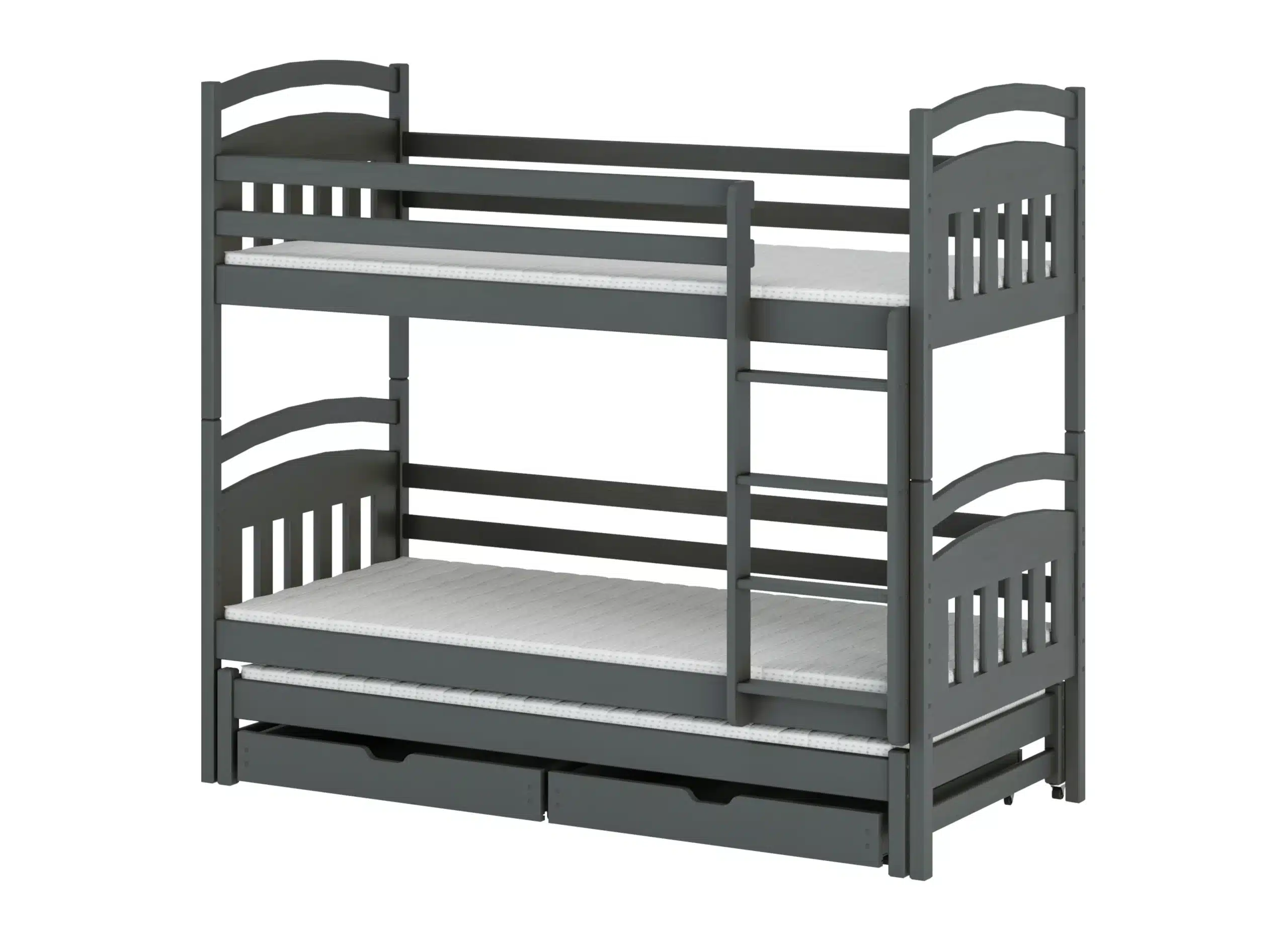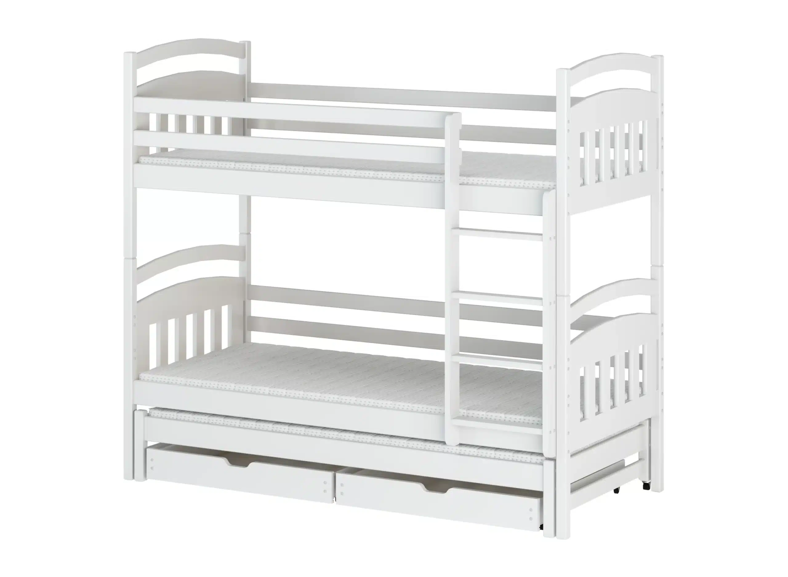 Trojlôžková poschodová posteľ NELA sa perfektne osvedčí, ak chceš vytvoriť pohodlné podmienky na spanie pre tri deti. Tri miesta na spanie s takmer rovnakými rozmermi zabezpečia každému dieťaťu optimálny komfort počas noci, bez ohľadu na to, na ktorej úrovni spí. Tretí matrac môže byť aj dodatočnou možnosťou pre hostí alebo miestom, kde sa budú deti hrať, aby nezanechávali hračky v posteli.