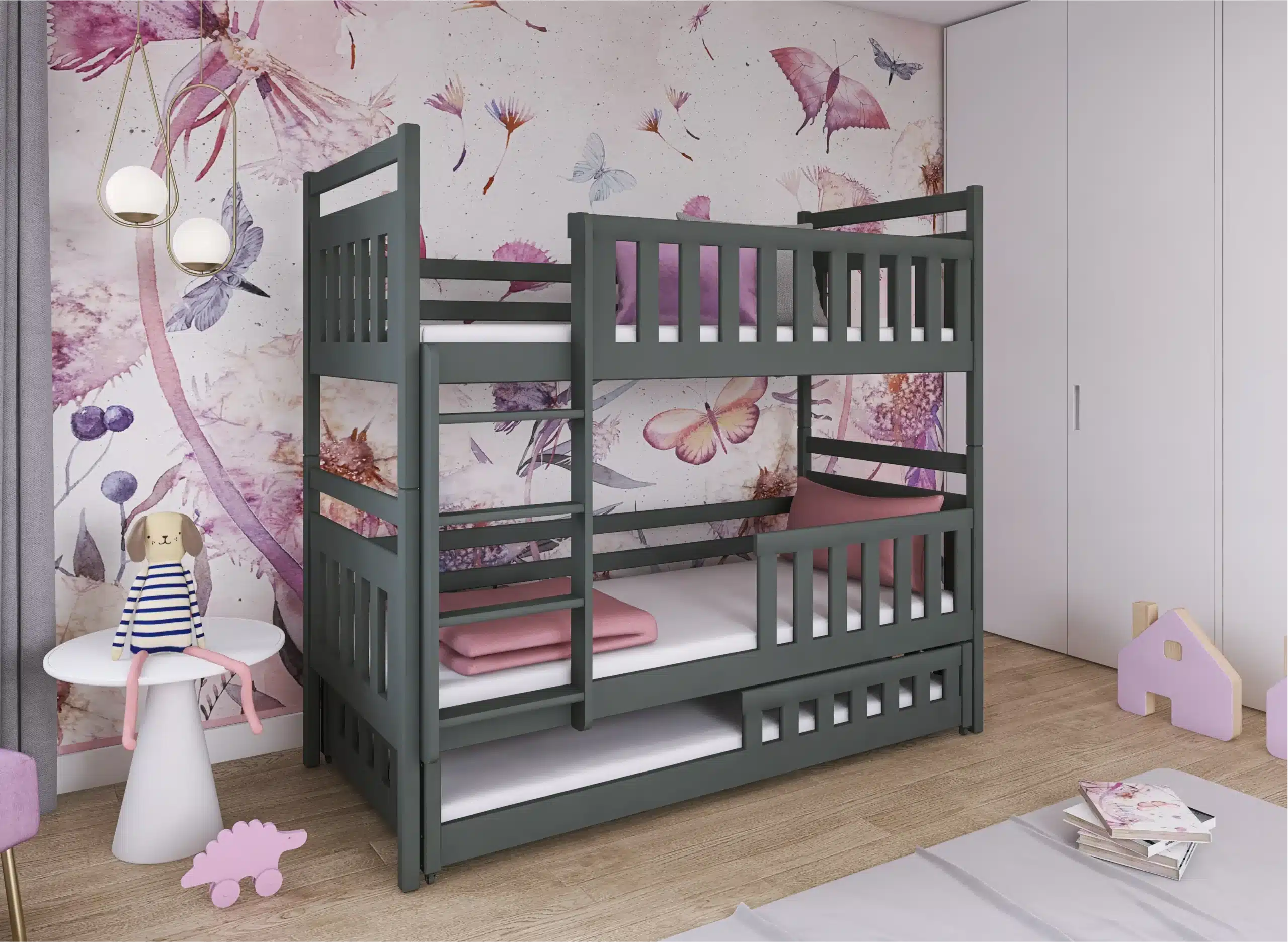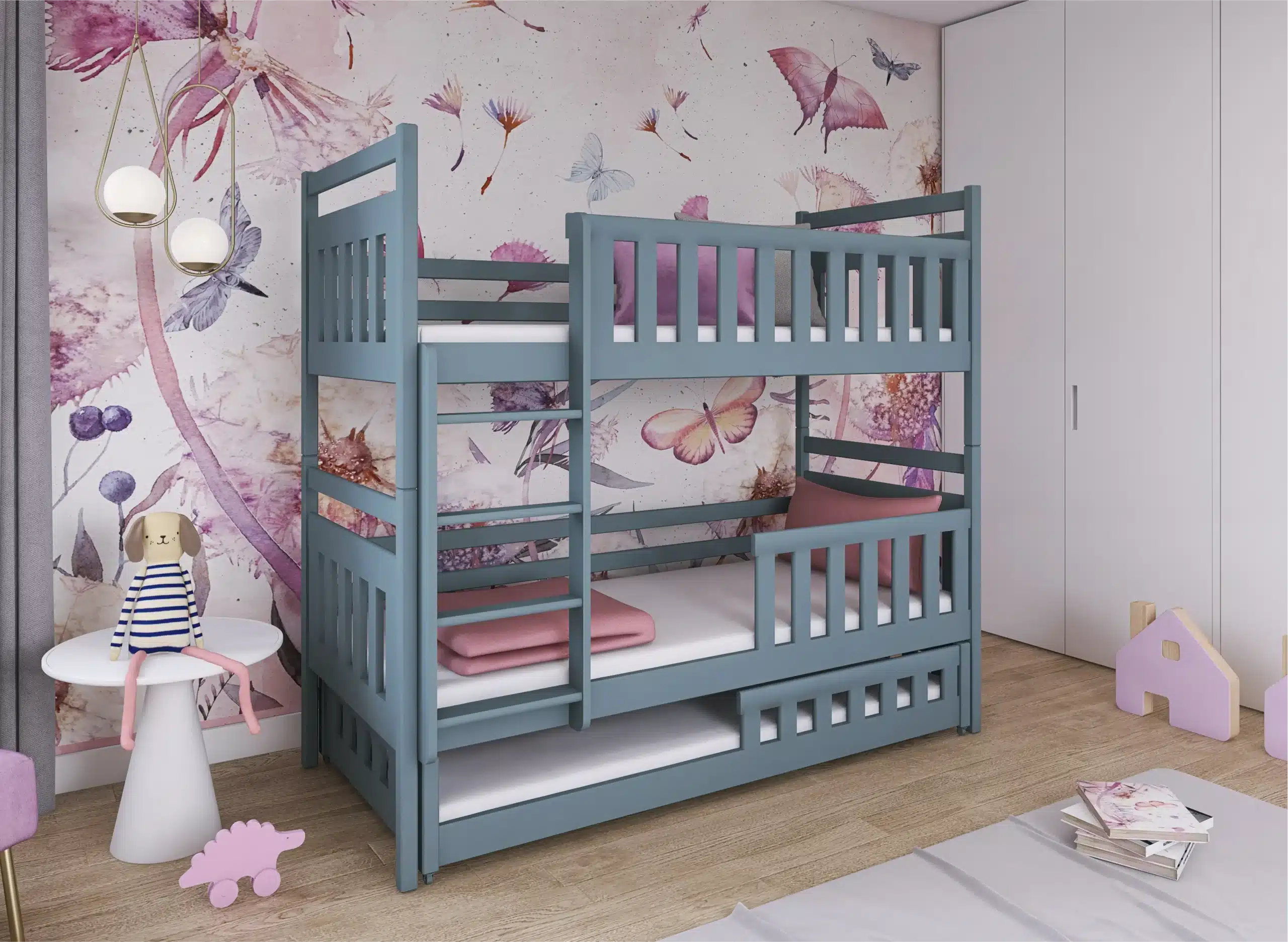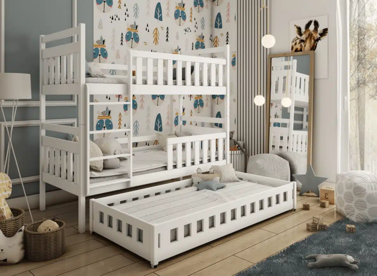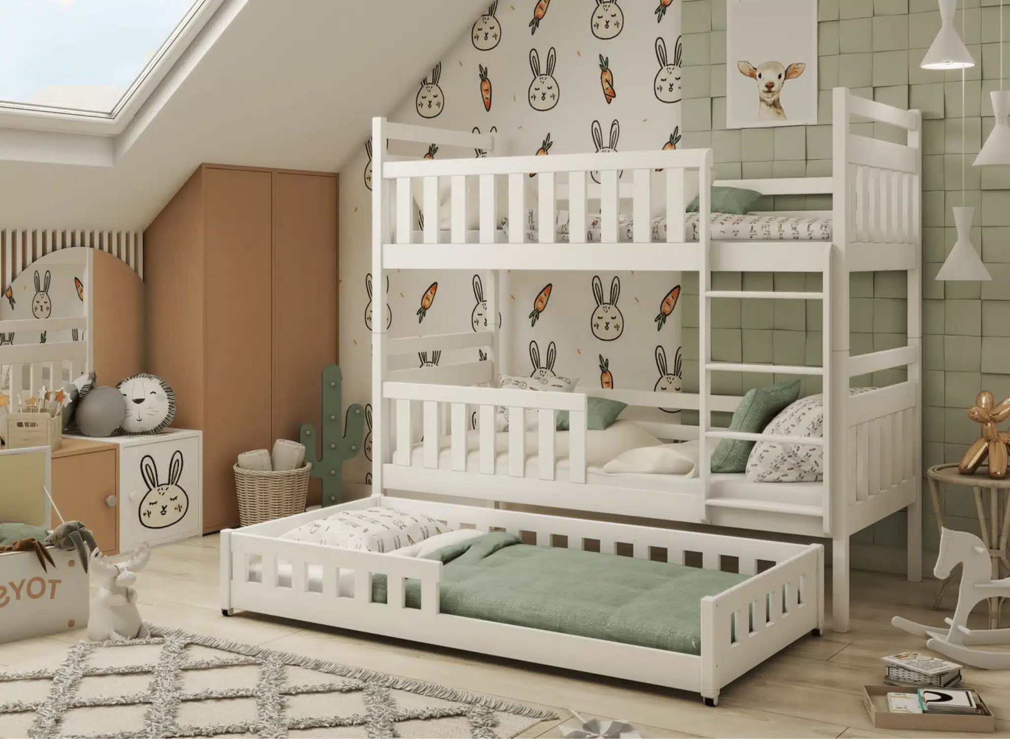 Naša poschodová posteľ OLI sa skvele hodí nielen do detskej izby, v ktorej býva trojica súrodencov, ale aj do izby, kde bývajú dve sestry alebo dvaja bratia. A čo s tretím lôžkom? Je to skvelé riešenie, keď tvoje deti radi pozývajú kamarátov na noc alebo keď babka či dedko prídu na návštevu k svojim vnúčatám a chcú zostať s nimi o niečo dlhšie.