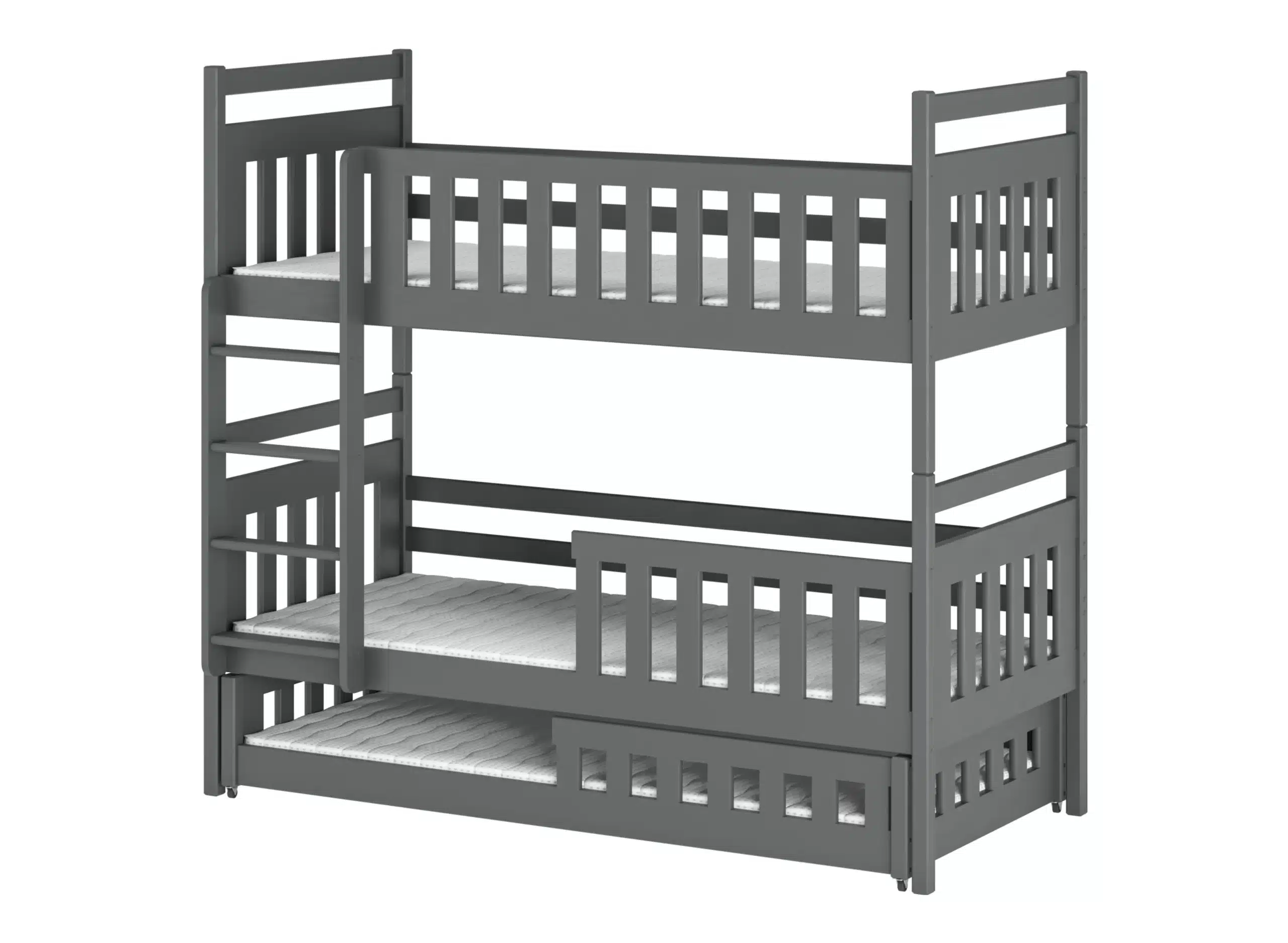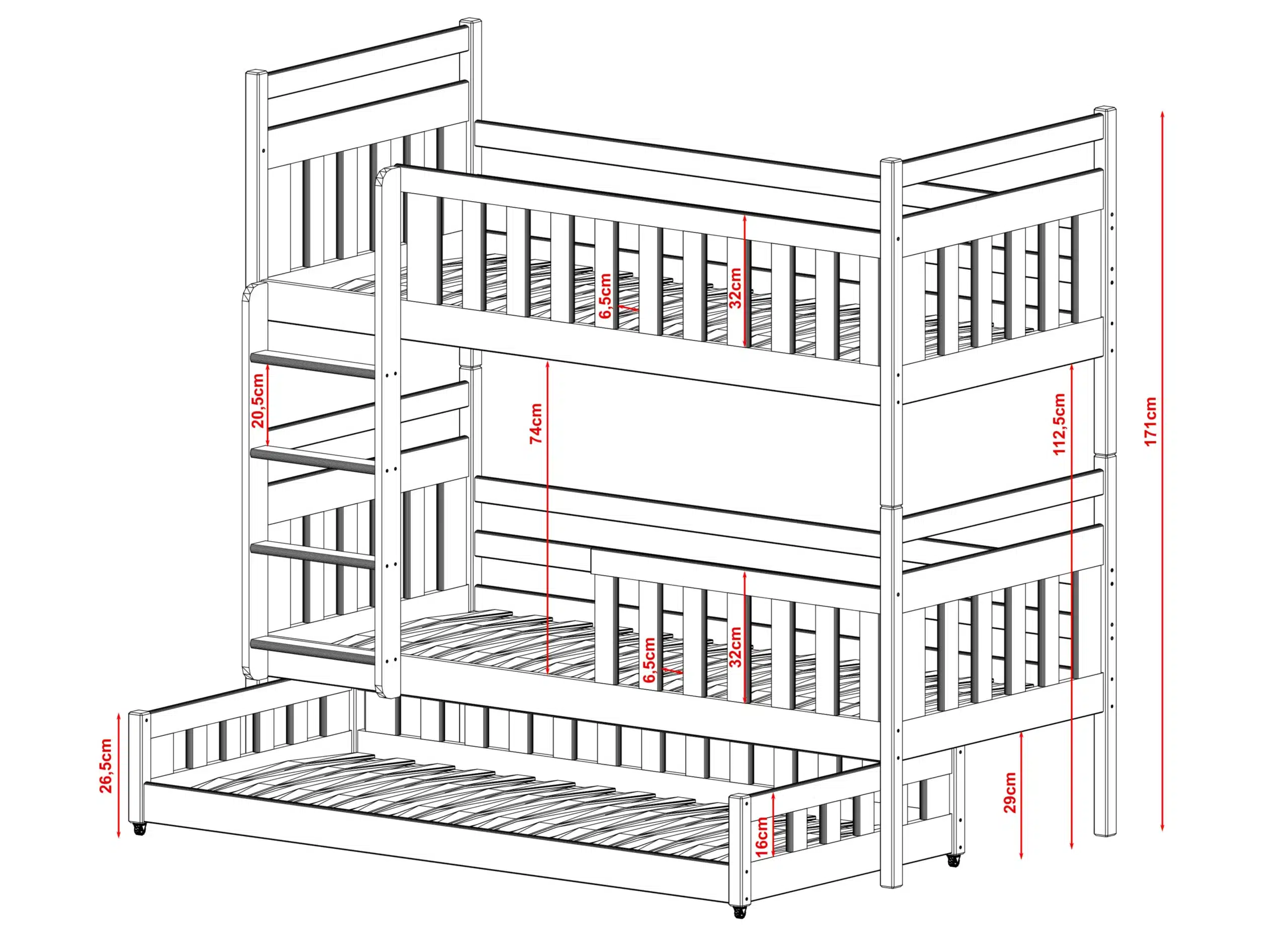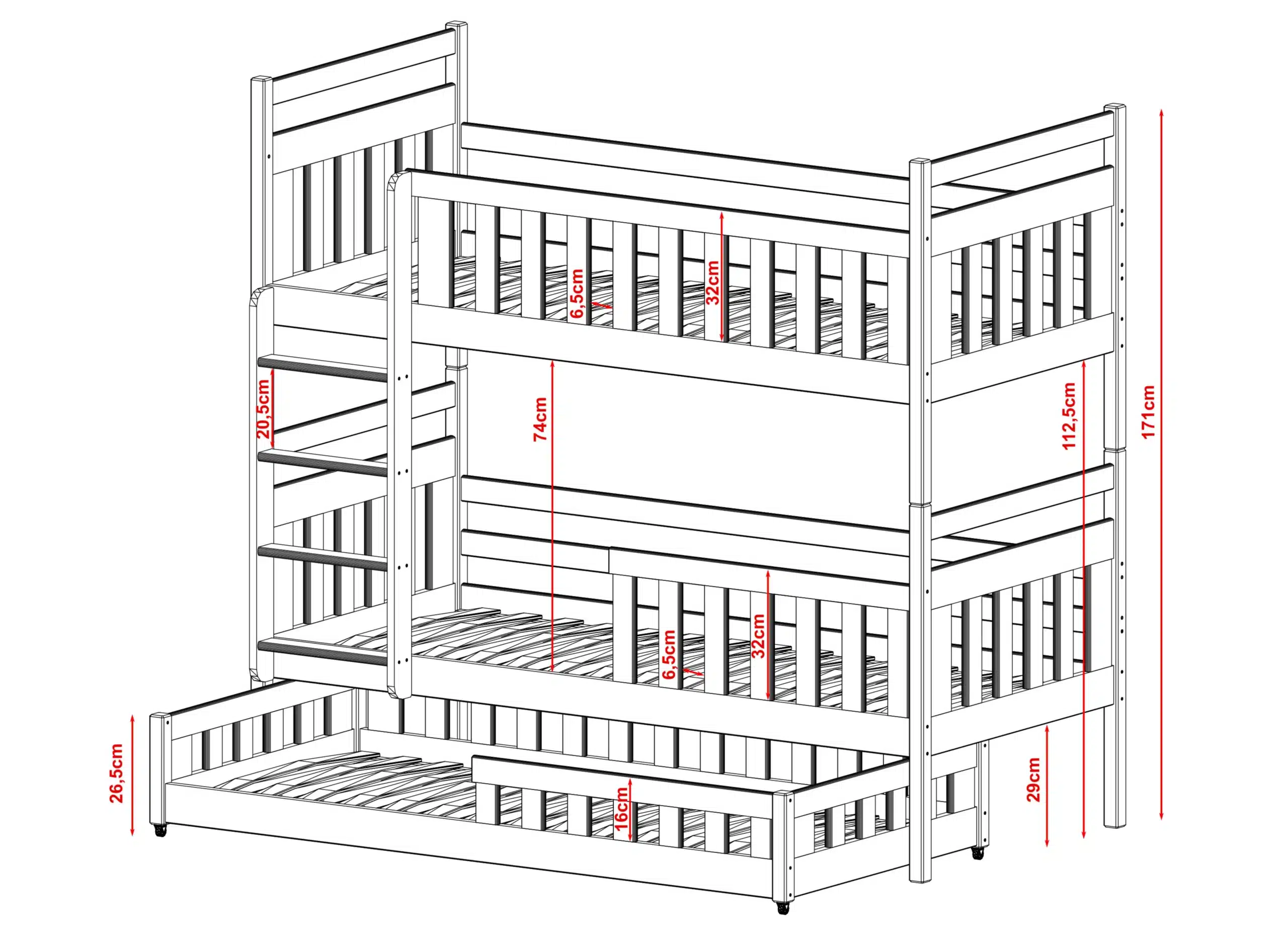 Naša poschodová posteľ OLI sa skvele hodí nielen do detskej izby, v ktorej býva trojica súrodencov, ale aj do izby, kde bývajú dve sestry alebo dvaja bratia. A čo s tretím lôžkom? Je to skvelé riešenie, keď tvoje deti radi pozývajú kamarátov na noc alebo keď babka či dedko prídu na návštevu k svojim vnúčatám a chcú zostať s nimi o niečo dlhšie.