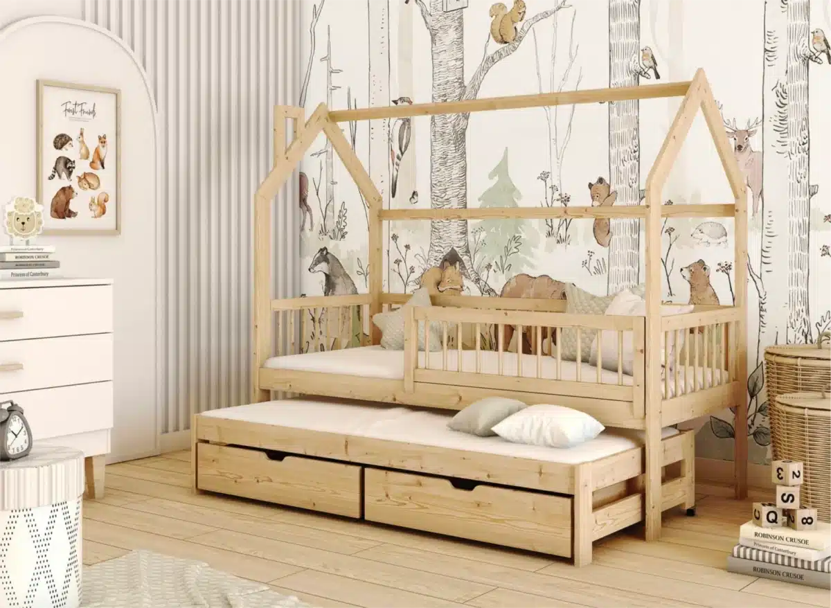 Porozprávajme sa o mimoriadne dôležitej otázke – bezpečnosti. Tá je pre nás najdôležitejšia, keď kupujeme posteľ. Predstavovaný nábytok, detská posteľ domček POPI, je lídrom v bezpečnosti. Vyrobený z borovicového dreva, má ochranné zábrany, ktoré chránia tvoje dieťa cez deň aj v noci. Všetky rohy postele sú zaoblené, čo predchádza náhodným oderom kože. Okrem toho sú všetky dosky lakované farbami, ktoré sú 100% bezpečné pre zdravie. Vďaka tomu je detská posteľ domček POPI mimoriadne bezpečná. Máš záruku, že je to nábytok na roky.