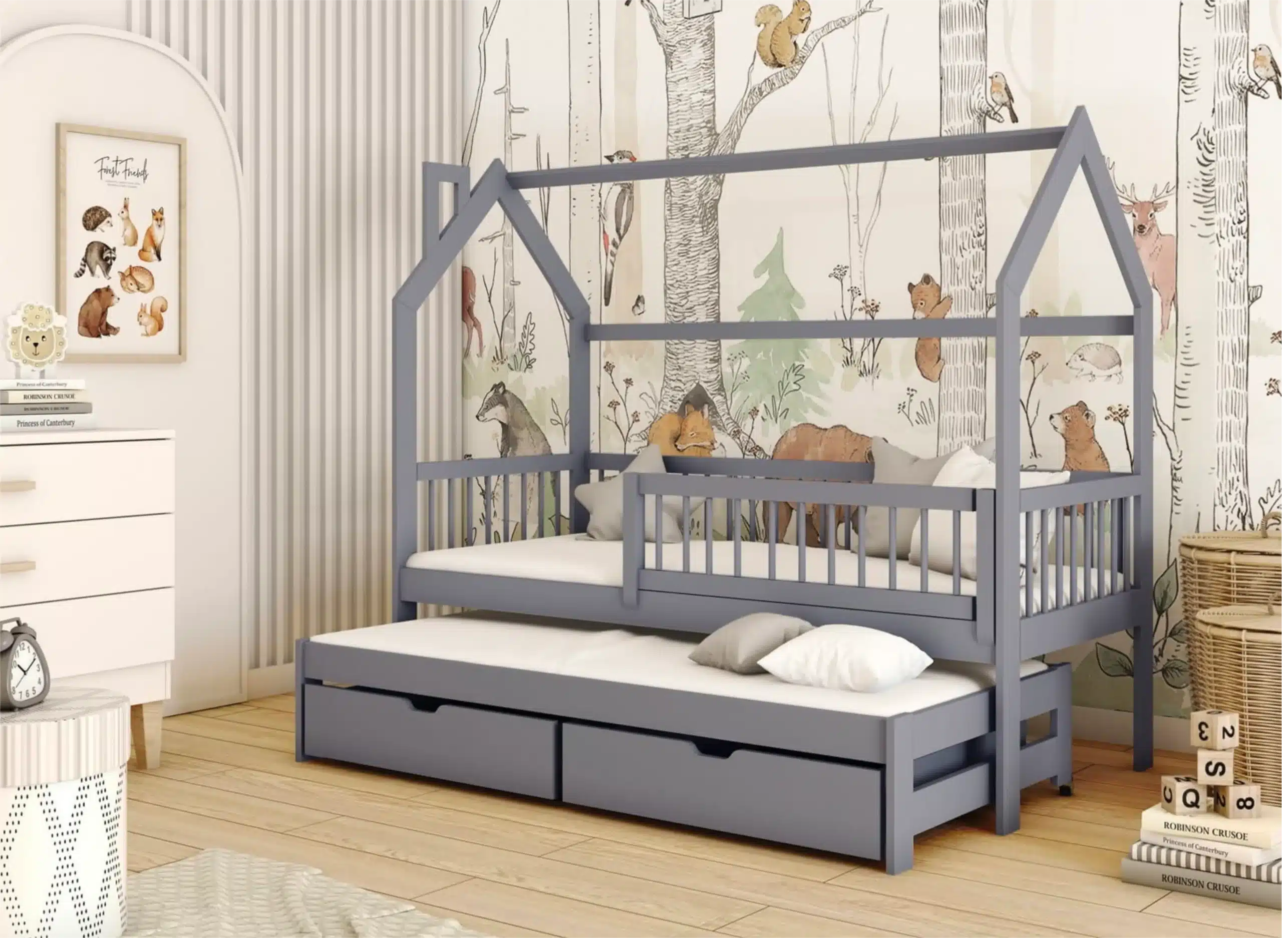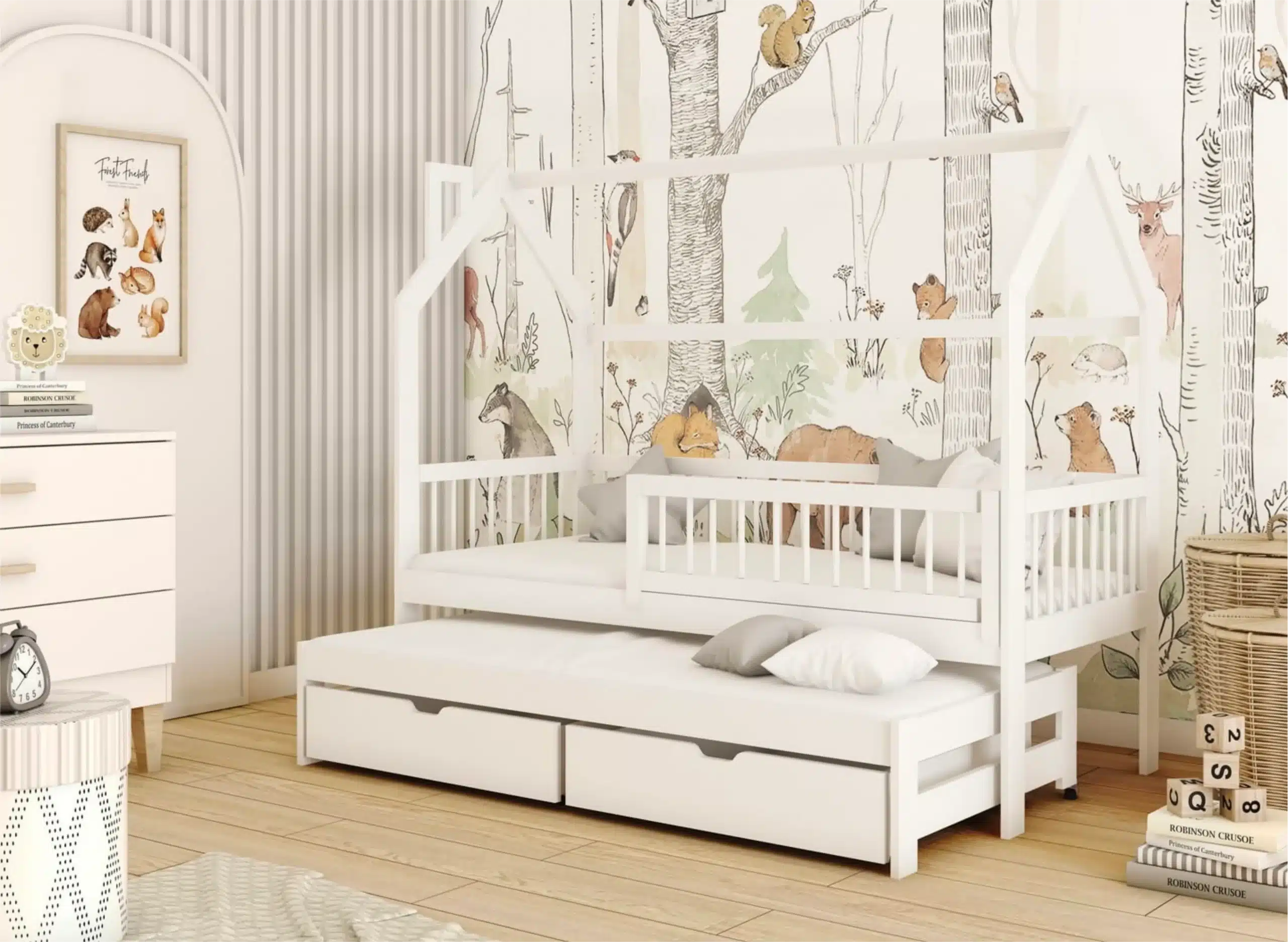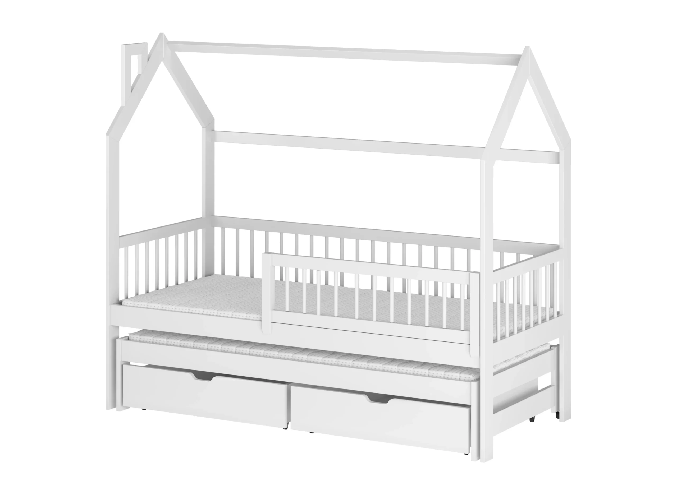 Napriek roztomilému dizajnu má detská posteľ domček POPI pomerne jednoduchú konštrukciu, ktorá sa hodí do každého štýlu detskej izby. To je veľká výhoda. Aj keď plánuješ rekonštrukciu izby, môžeš si byť istý, že táto posteľ sa dokonale prispôsobí každému aranžmánu. Vyber si detskú posteľ domček POPI a uvidíš, že tvoje dieťa už nikdy nebude mať problém so zaspávaním. Pomocou nej vytvoríš rozprávkovú a veľmi útulnú scenériu v detskej izbe. Existuje mnoho dôvodov, prečo sa rozhodnúť pre detskú posteľ domček POPI. Hlavne kvôli veľkej funkčnosti, ktorú poskytuje. Predovšetkým má posteľ výsuvné lôžko, vďaka čomu môže rodič v prípade potreby strážiť dieťa. Je to tiež druhé, pohodlné miesto na spanie pre súrodencov. Takéto kompaktné riešenie umožňuje ušetriť veľa miesta. To však nie je všetko. Detská posteľ domček POPI má tiež dve veľké a priestranné zásuvky, ktoré sú umiestnené pod roštom. Vďaka nim môžeš uložiť rôzne drobnosti a konečne udržať poriadok.