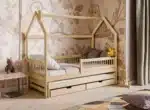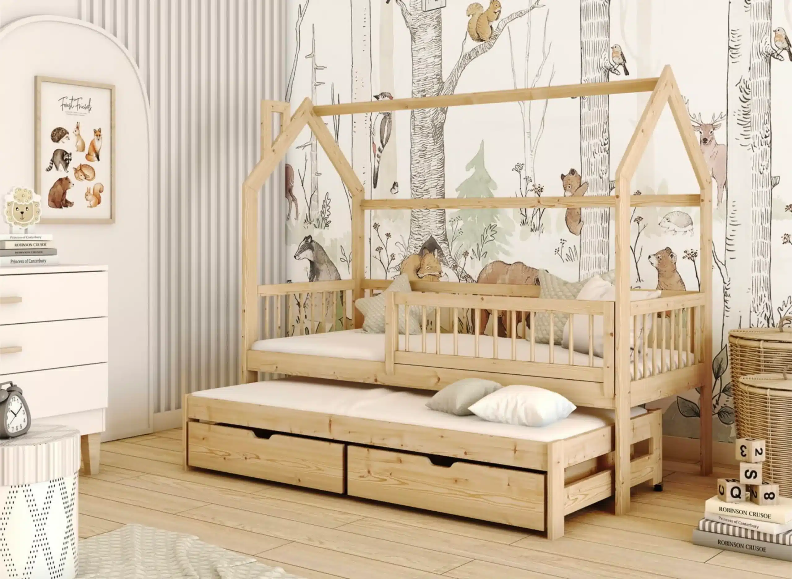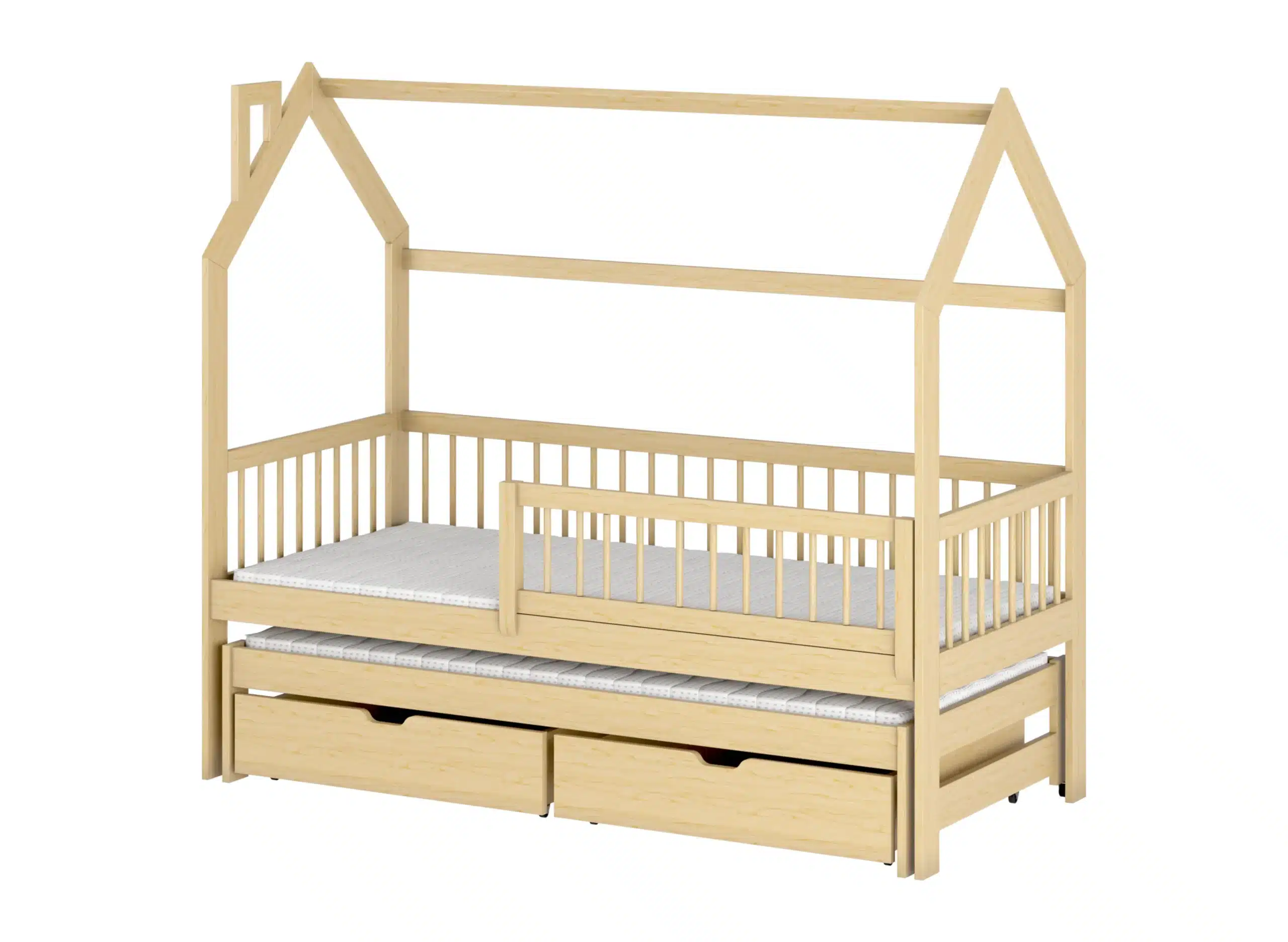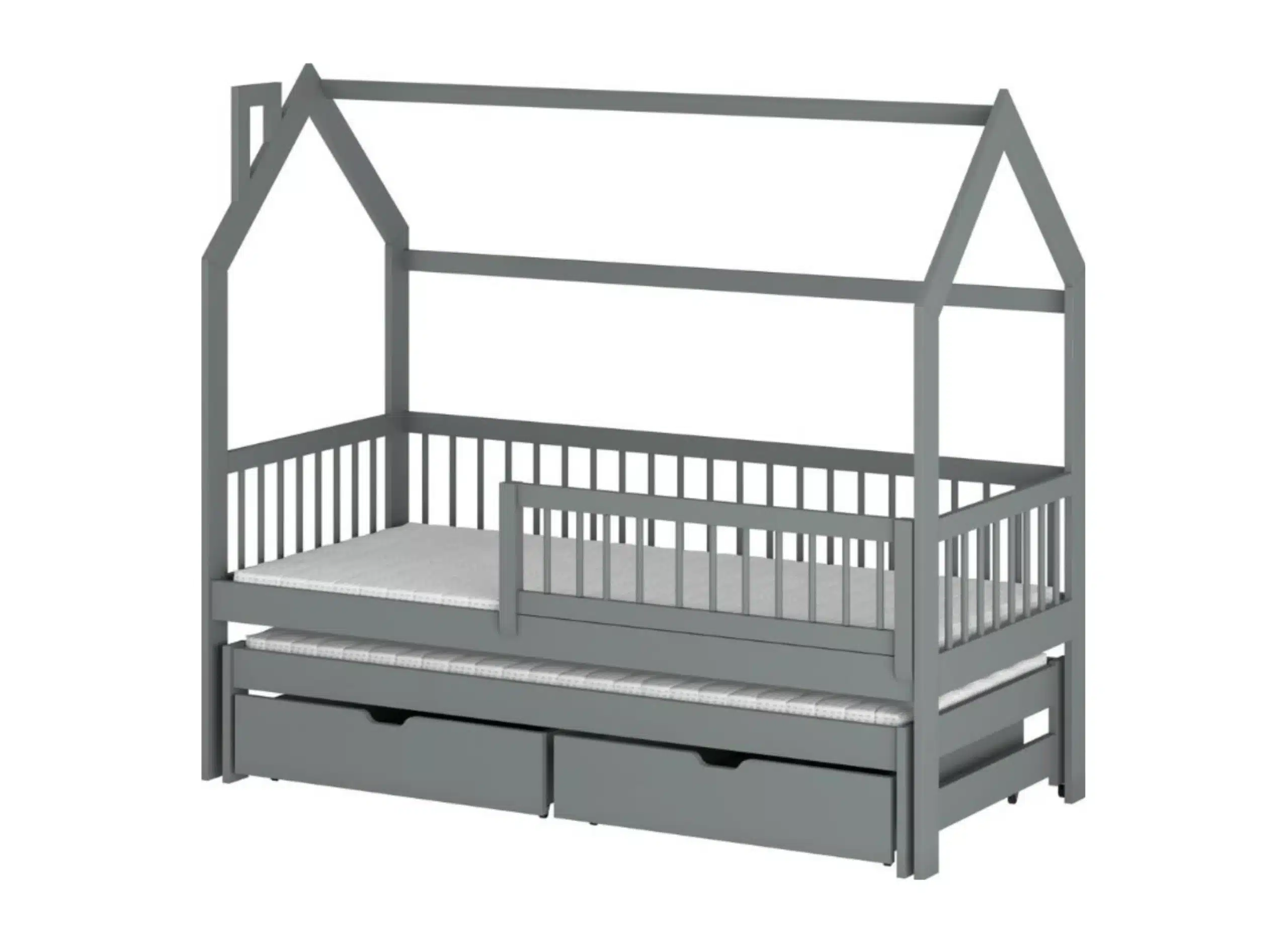 Napriek roztomilému dizajnu má detská posteľ domček POPI pomerne jednoduchú konštrukciu, ktorá sa hodí do každého štýlu detskej izby. To je veľká výhoda. Aj keď plánuješ rekonštrukciu izby, môžeš si byť istý, že táto posteľ sa dokonale prispôsobí každému aranžmánu. Vyber si detskú posteľ domček POPI a uvidíš, že tvoje dieťa už nikdy nebude mať problém so zaspávaním. Pomocou nej vytvoríš rozprávkovú a veľmi útulnú scenériu v detskej izbe. Existuje mnoho dôvodov, prečo sa rozhodnúť pre detskú posteľ domček POPI. Hlavne kvôli veľkej funkčnosti, ktorú poskytuje. Predovšetkým má posteľ výsuvné lôžko, vďaka čomu môže rodič v prípade potreby strážiť dieťa. Je to tiež druhé, pohodlné miesto na spanie pre súrodencov. Takéto kompaktné riešenie umožňuje ušetriť veľa miesta. To však nie je všetko. Detská posteľ domček POPI má tiež dve veľké a priestranné zásuvky, ktoré sú umiestnené pod roštom. Vďaka nim môžeš uložiť rôzne drobnosti a konečne udržať poriadok.