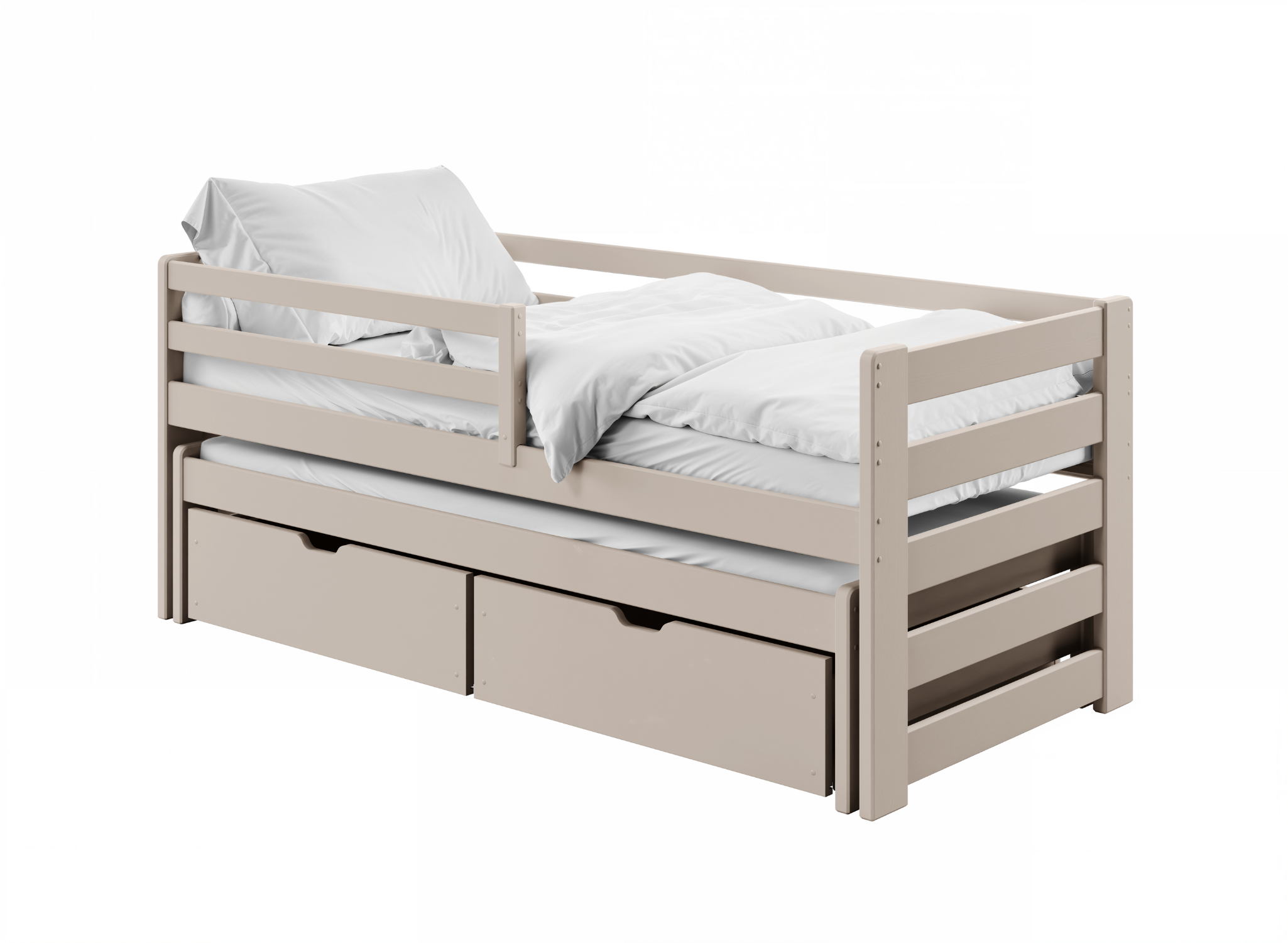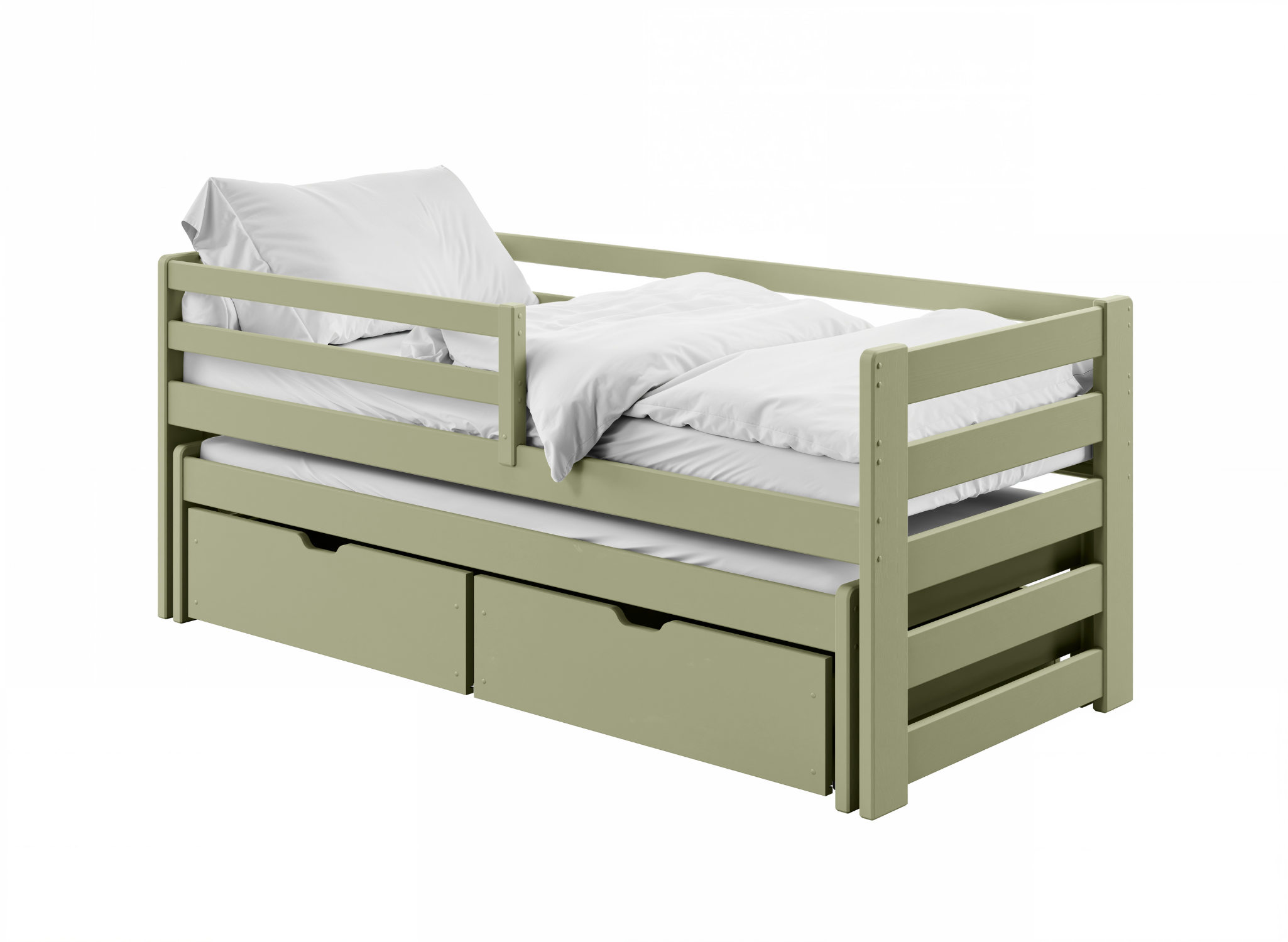 Je vyrobená z borovicového dreva, čo z nej robí posteľ SENZO, ktorá je odolná a má dlhú životnosť. Ide teda o dlhodobú investíciu, možno ju využiť najskôr ako posteľ pre deti , neskôr aj pre tínedžerov. Rošt matraca je vyrobený z brezového FLEX pásu , vďaka čomu je celok odolný voči zaťaženiu. Výsuvná posteľ SENZO je dobrou alternatívou k dvom samostatným posteliam v miestnosti, kde pre ne nie je dostatok miesta. Zaberá rovnaký priestor ako štandardné jednomiestne modely . Voliteľne môže byť vybavená priestrannými zásuvkami na uloženie napr. na posteľnú bielizeň, hračky alebo oblečenie.