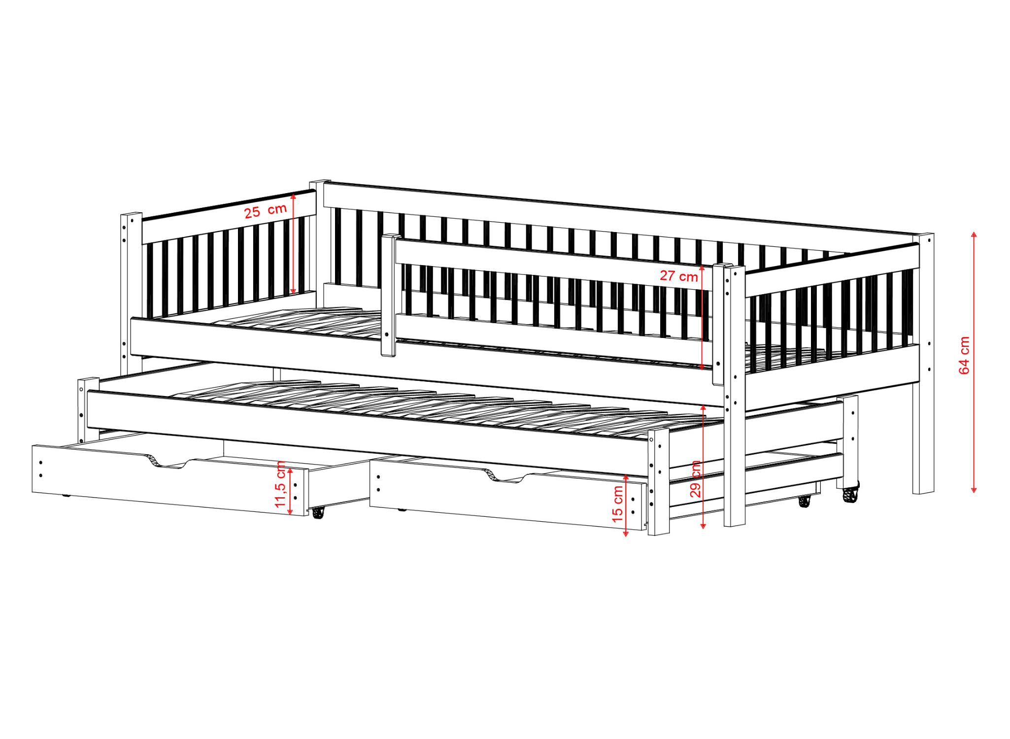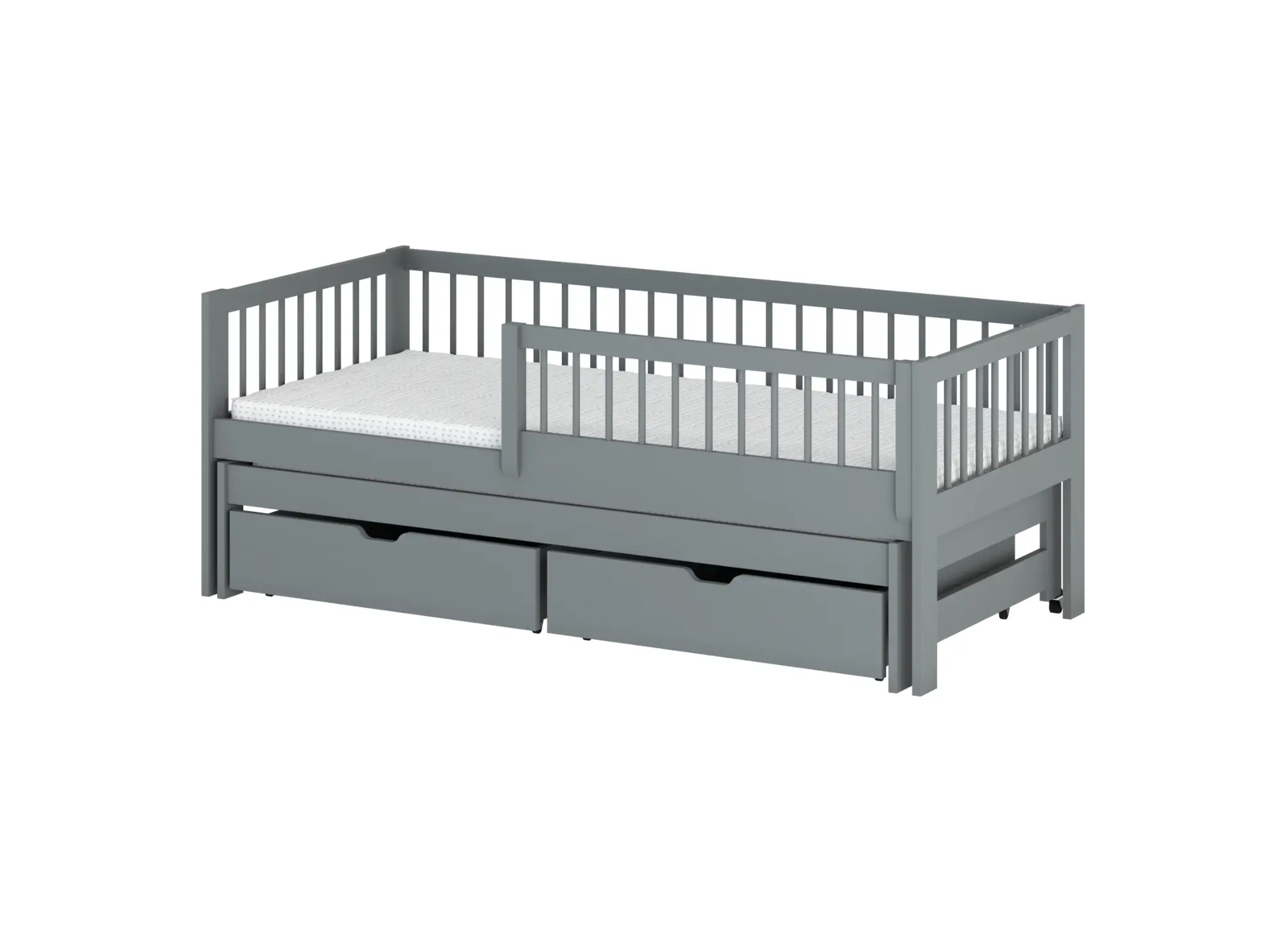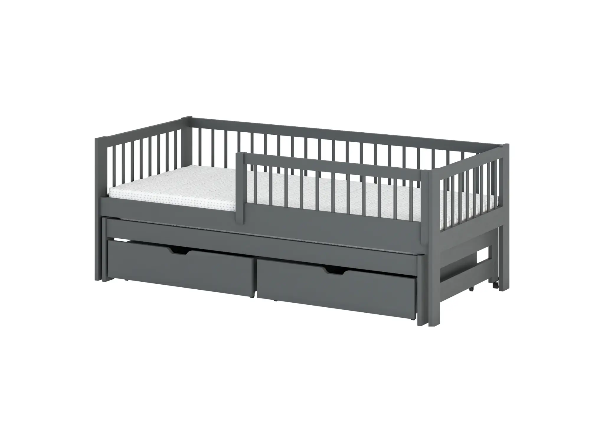 Detská posteľ SOFTI je oceňovaná nielen pre svoj vzhľad a pohodlie, ktoré ponúka. Má praktické vylepšenia v podobe vysúvacieho lôžka a priestranných zásuviek, ktoré môžeš využiť na čokoľvek, čo chceš. Napríklad tam môžeš uložiť oblečenie alebo detské hračky. Dodatočný úložný priestor v detskej izbe je vždy na nezaplatenie, však?
