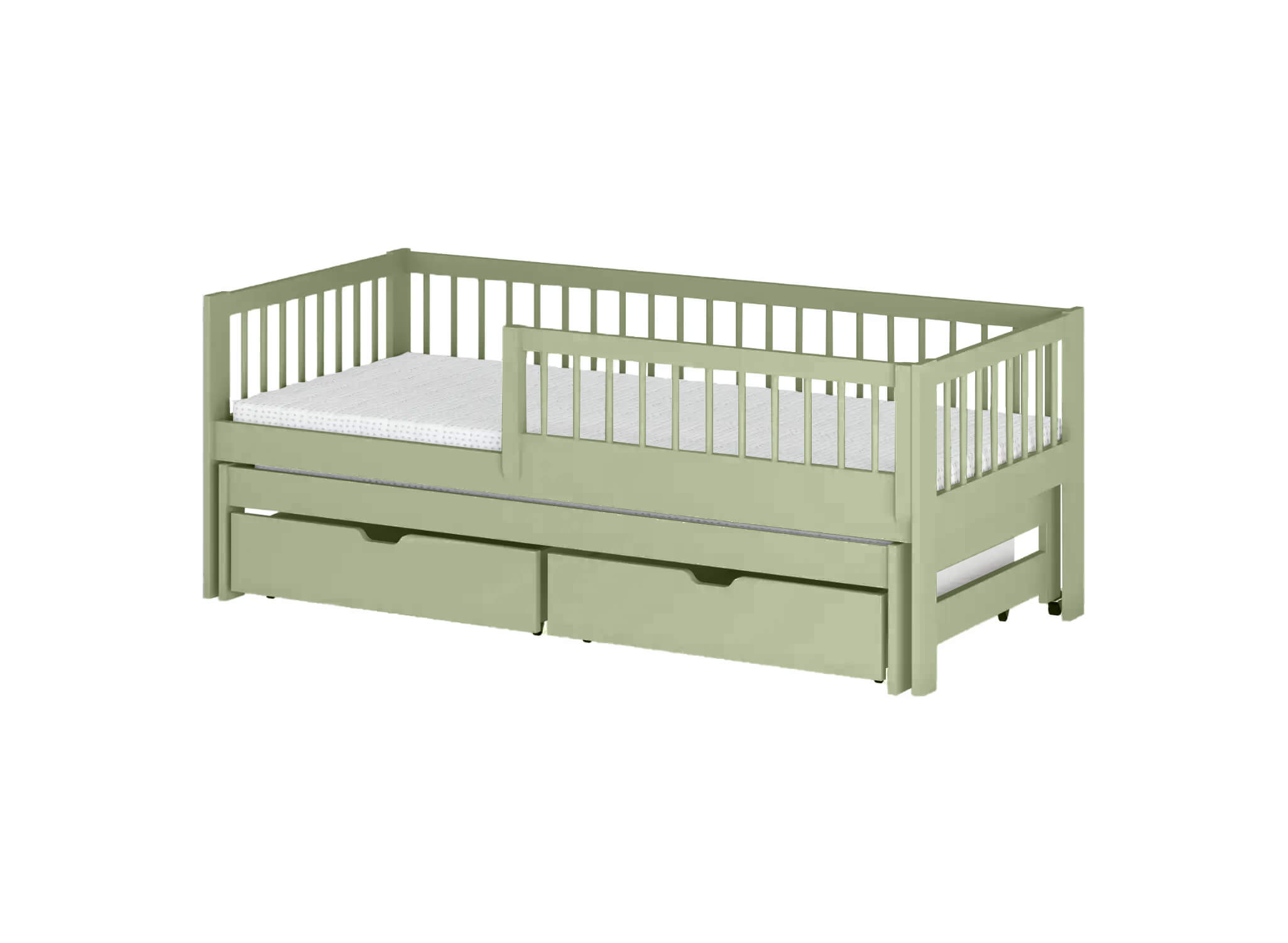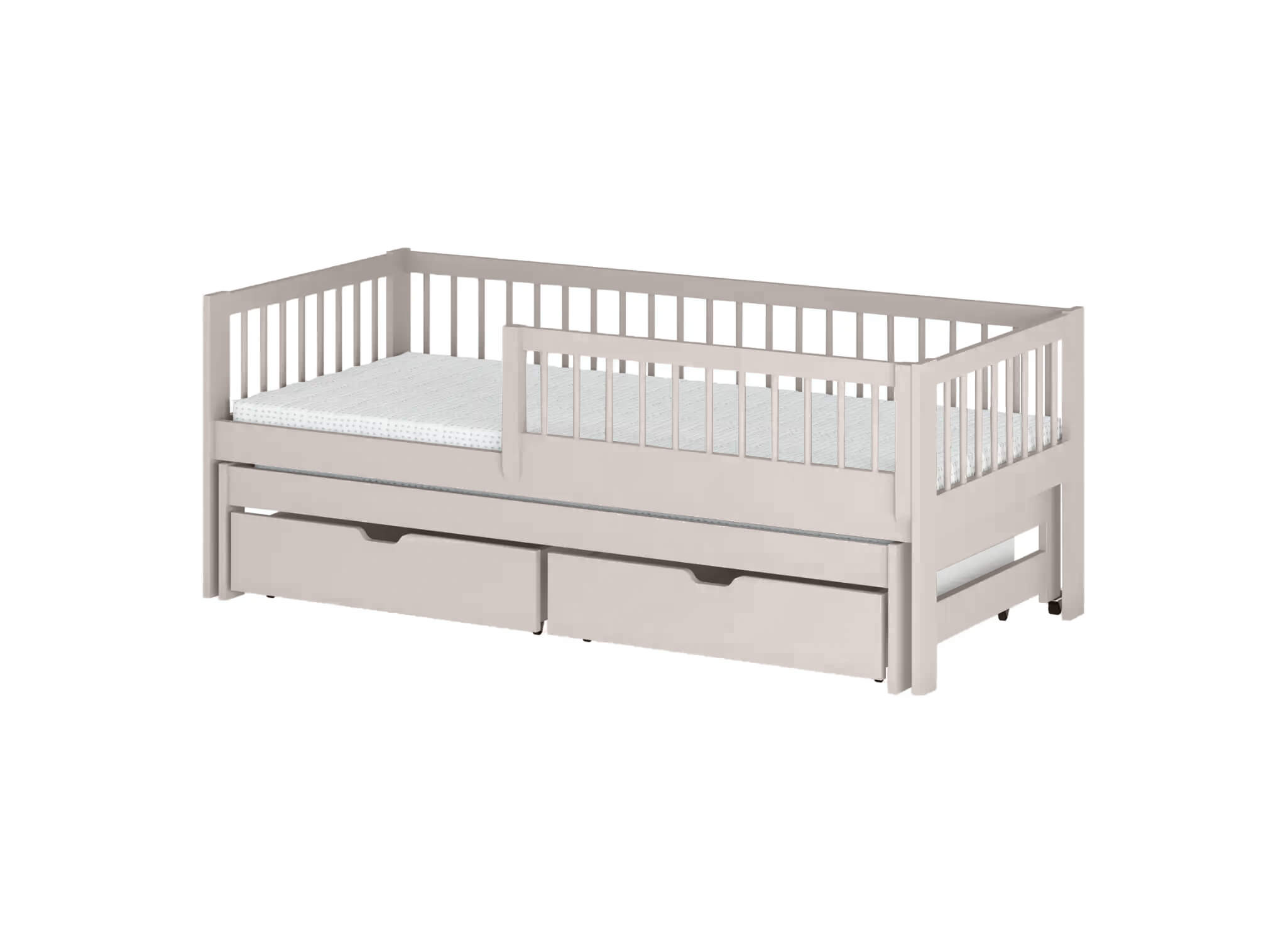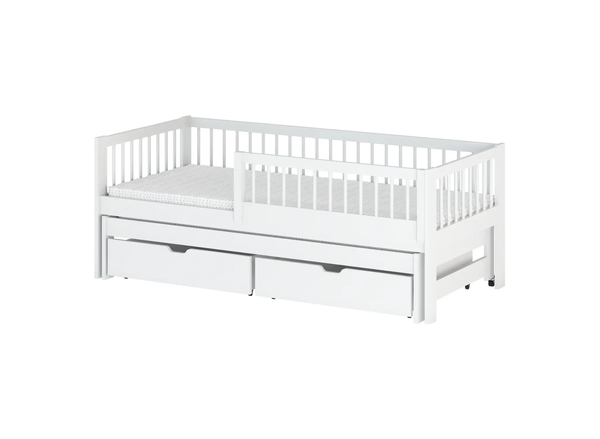 Detská posteľ SOFTI je oceňovaná nielen pre svoj vzhľad a pohodlie, ktoré ponúka. Má praktické vylepšenia v podobe vysúvacieho lôžka a priestranných zásuviek, ktoré môžeš využiť na čokoľvek, čo chceš. Napríklad tam môžeš uložiť oblečenie alebo detské hračky. Dodatočný úložný priestor v detskej izbe je vždy na nezaplatenie, však?