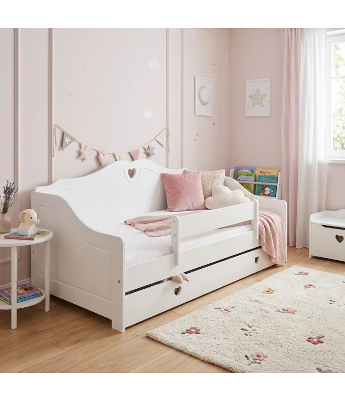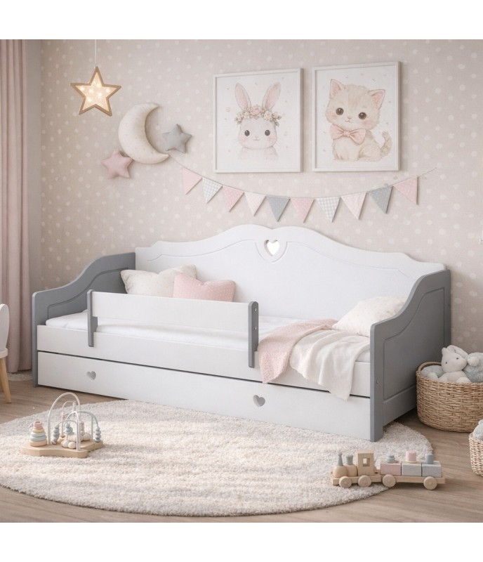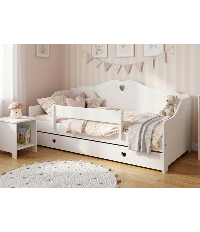 Posteľ SRDCE je praktická a bezpečná jednolôžková posteľ určená pre deti a rodičov, ktorí hľadajú odolný a funkčný kus nábytku do detskej izby. Vďaka jednoduchému a nadčasovému dizajnu sa hodí do väčšiny interiérov.