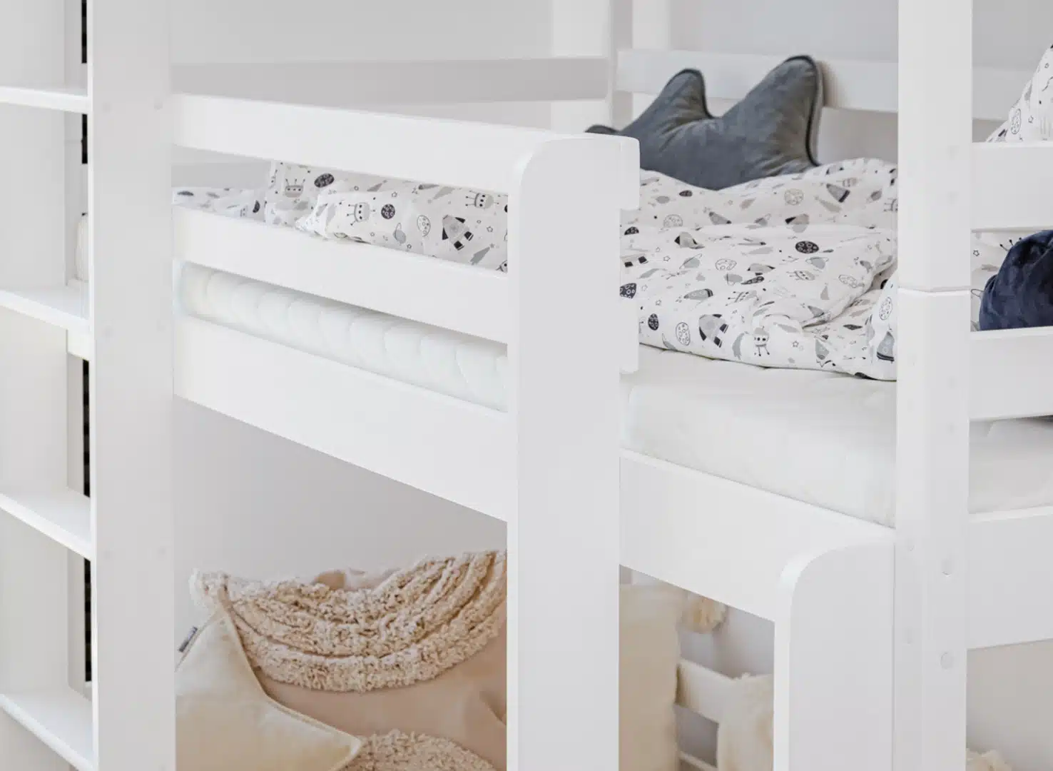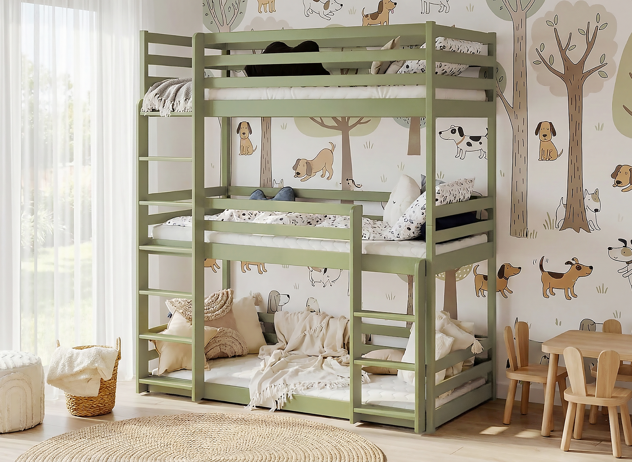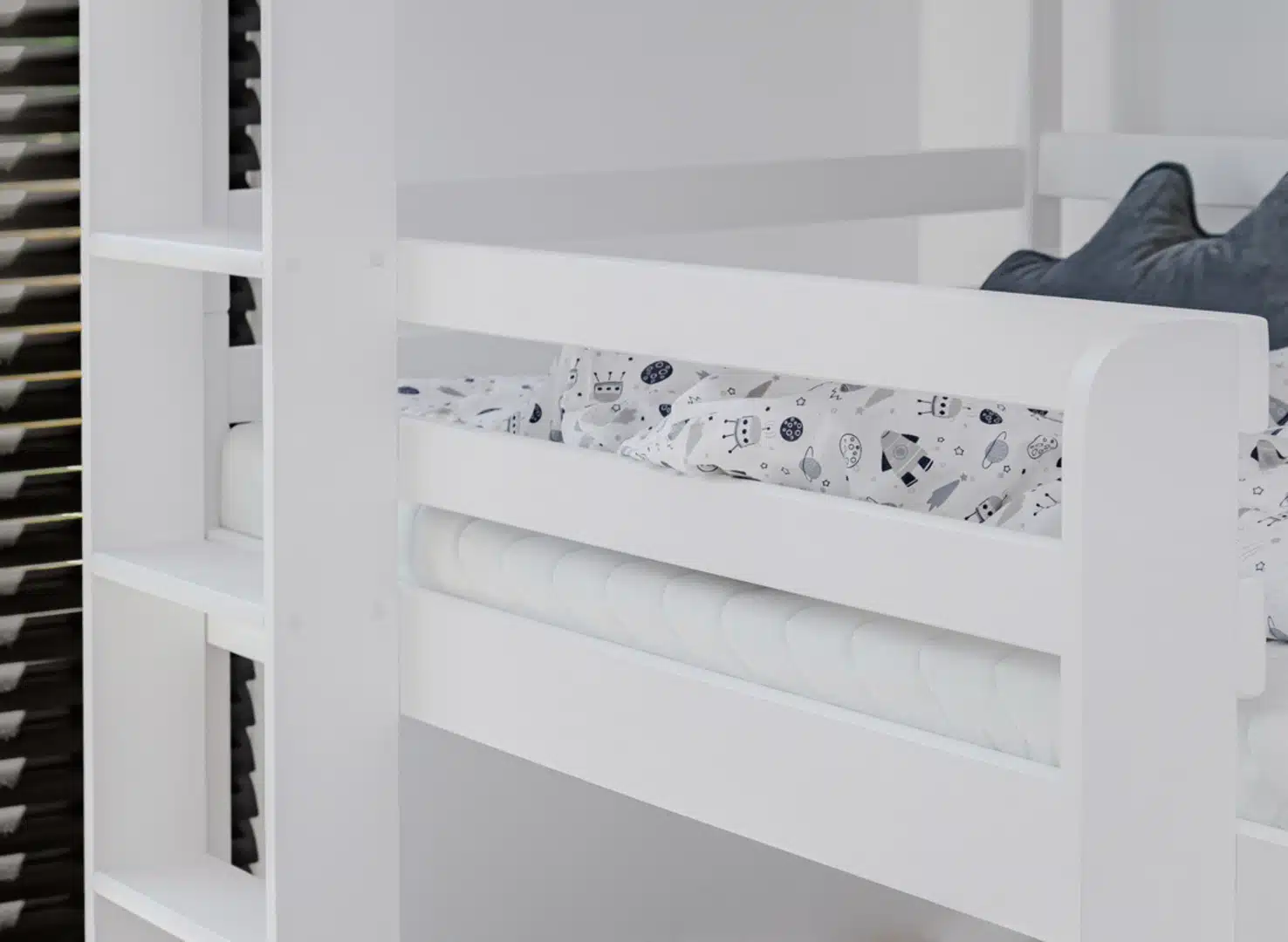 Nie je ľahké tak zariadiť detskú izbu, aby mali deti miesto na hranie, ale aj učenie či iné aktivity. Stojí za to, aby ste sa ako rodičia zamysleli, či nevybrať poschodovú posteľ v Raj posteli. Naša poschodová posteľ TADE je skvelá pre trochu staršie deti a zaručuje im bezpečný spánok. Určite si pozrite všetky výhody tejto výnimočnej poschodovej postele pre deti. Všetko vďaka až 3 úrovniam na spanie, ktoré sú navrhnuté v poschodovej posteli TADE . Možno vďaka poschodovej posteli prestanú deti tak často navštevovať spálňu rodičov, pretože si zamilujú svoje nové miesto na spanie. Poschodová posteľ TADE do detskej izby je funkčné riešenie s dôrazom na najmenšie detaily.