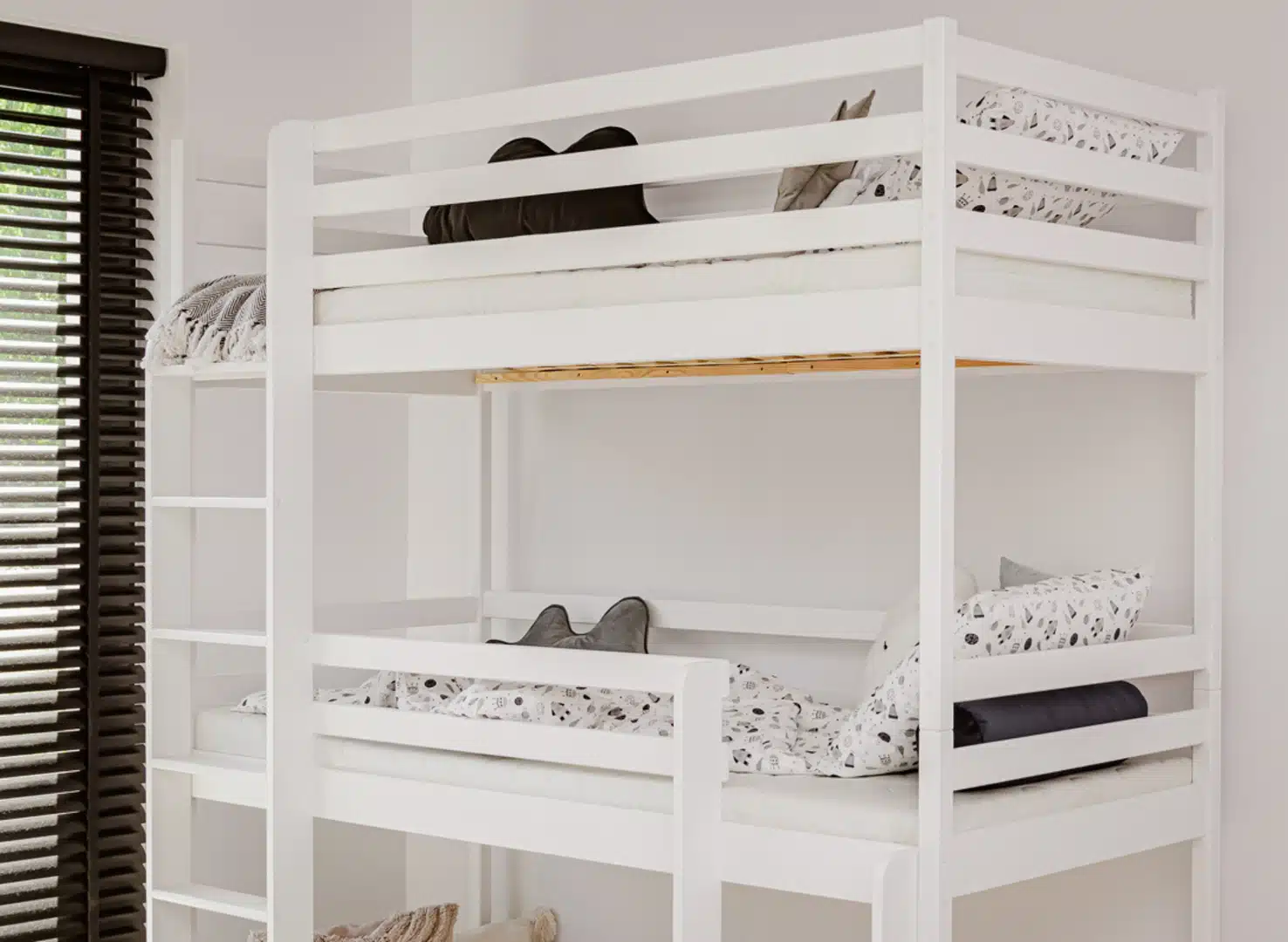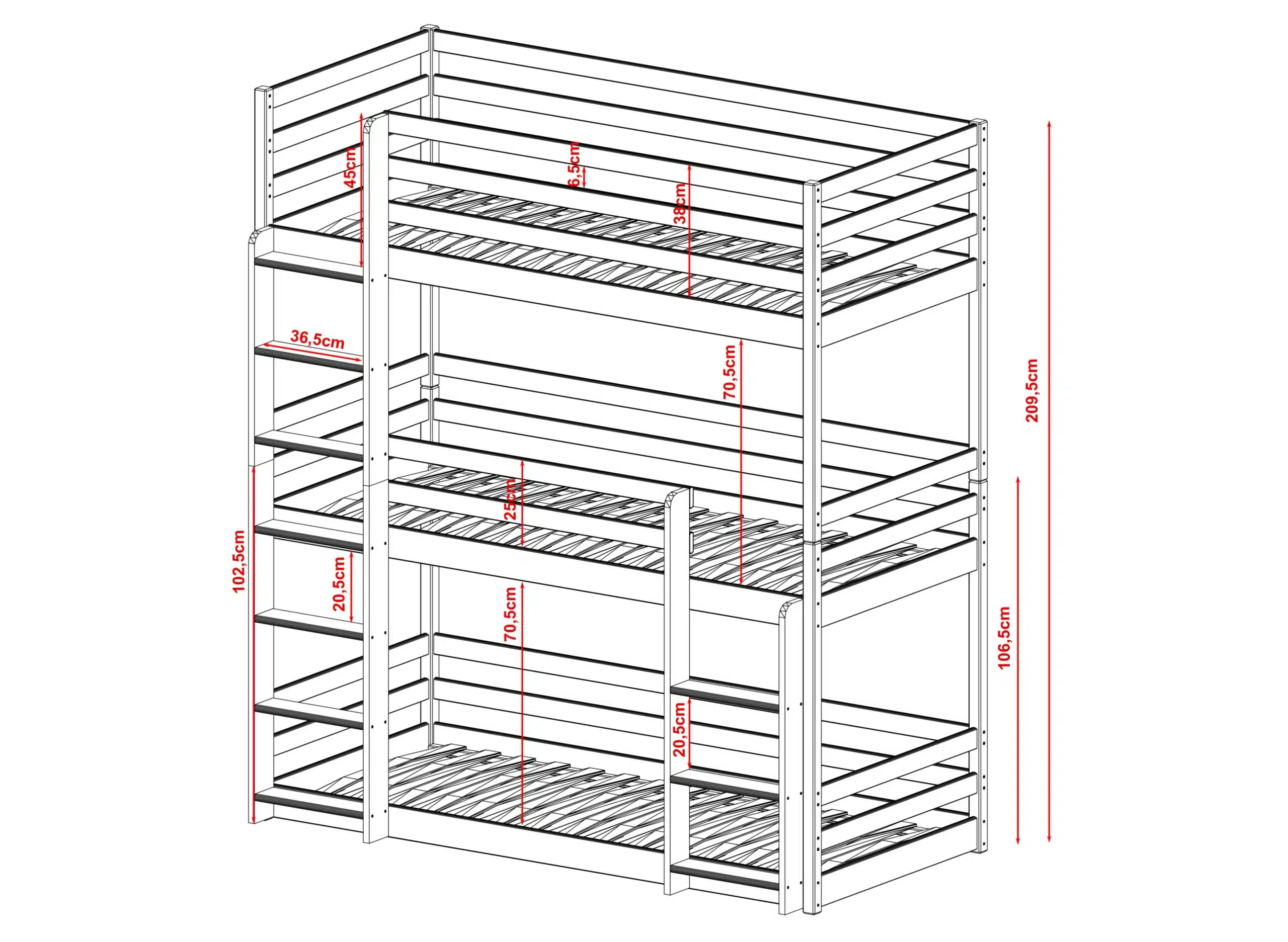 Určite poschodová posteľ TADE z nášho eshopu poskytuje mnoho možností na hranie pre najmenších. Okrem toho je poschodová posteľ bezpečná a jej konštrukcia zabezpečí, aby sa tvojmu dieťaťu nič nestalo ani počas spánku. Ak nepotrebuješ 3 miesta na spanie, jedno z nich môžu deti využiť ako svoju súkromnú základňu. Očakávaš najvyššiu kvalitu? Voľba je jednoduchá – Raj posteli.