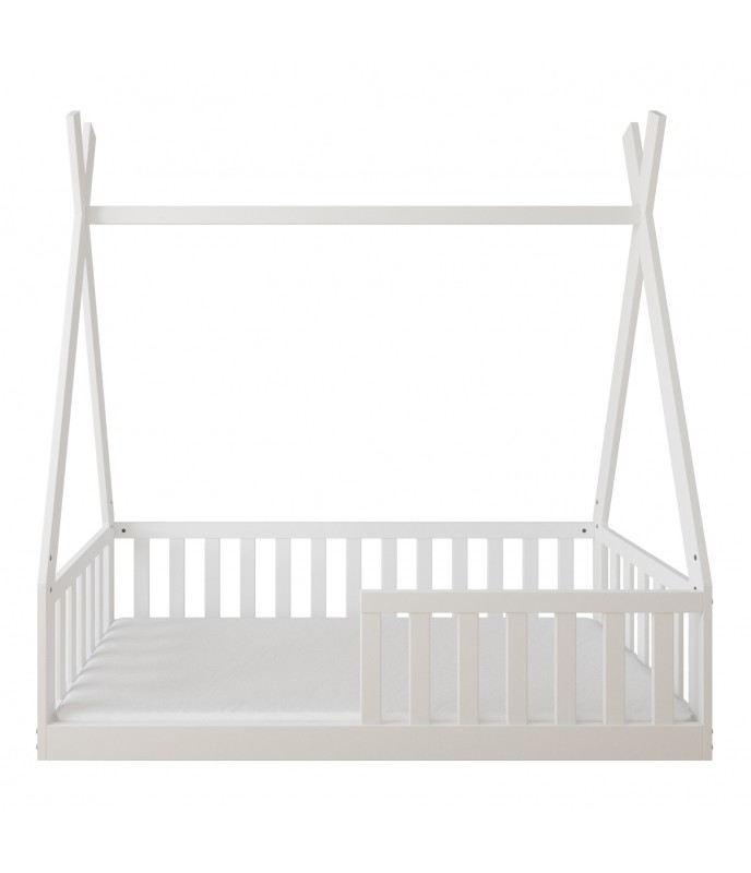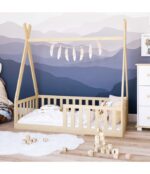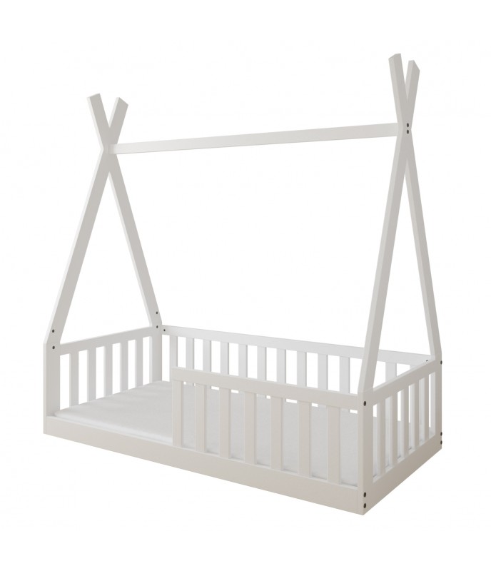 Posteľ „TIPI“ je pohodlná a funkčnáa vizuálne atraktívne riešenie pre detskú izbu, ktoré stimuluje fantáziu najmenších a zabezpečuje pokojný spánok.Posteľ stojí priamo na podlahe. Vďaka nízkej výške roštu ju deti môžu používať samostatne bez pomoci mamy a otca. „TIPI“ tiež zaujme svojím škandinávskym dizajnom, ktorý sa ľahko zmestí do akéhokoľvek priestoru.