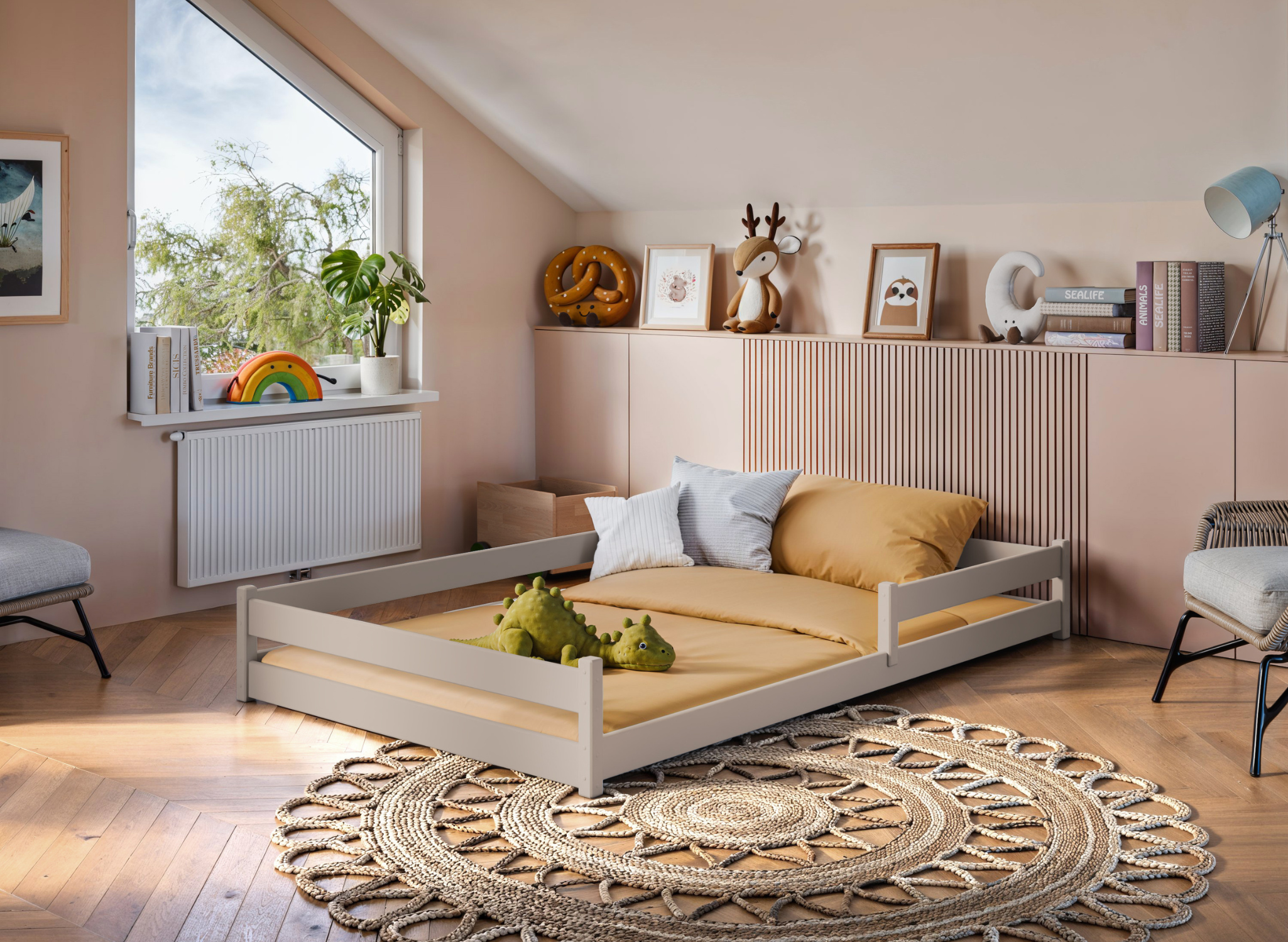 Výber správnej postele pre dieťa môže byť skutočnou výzvou. Predstavte si nábytok, ktorý spája funkčnosť, estetiku a spoľahlivú bezpečnosť — a to všetko za dostupnú cenu. Znie to ako sen? S jednolôžkovou posteľou ZOFIA je to realita. Každý projekt navrhnutý s ohľadom na malých objaviteľov. Detská postieľka so zábranami Zofia 120×200 je bezpochyby skvelou voľbou ako prvá posteľ pre dieťa. Navyše sa hodí aj ako model pre staršie dieťa, ktoré by chcelo spať samostatne vo svojej izbe. Ukážeme vám, že naše postele pre malé deti sa dokonale prispôsobia každej izbe, a vy uvidíte radosť na tvári svojho potomka. Nečakajte a pozrite sa, čo ďalšie skrýva Montessori posteľ ZOFIA