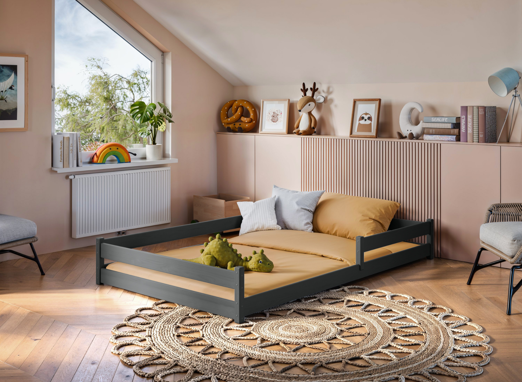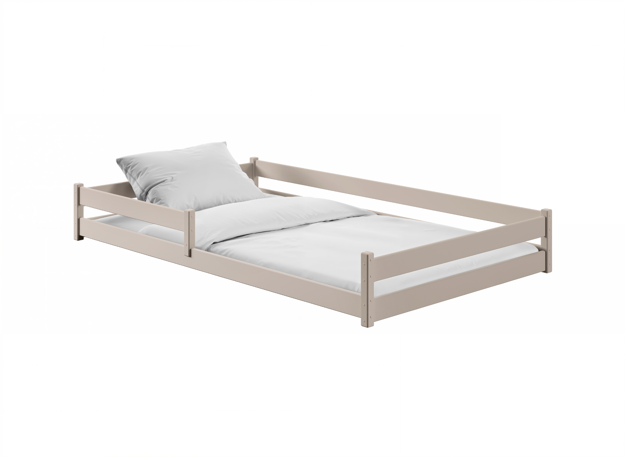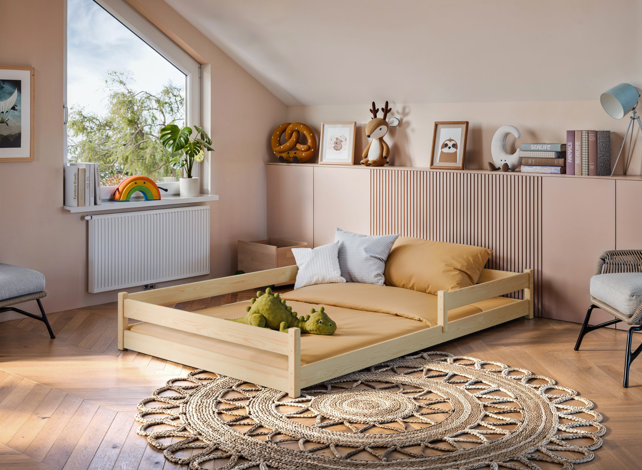 Bezpečnost vašeho dítěte je pro nás prioritou. S ohledem na ty nejmenší jsme vytvořili bezpečnou dětskou postel ZOFIA. Je vyrobena z pevného borovicového dřeva, což zaručuje její odolnost a přirozený vzhled, který se dokonale hodí do různých stylů interiérů. Kromě toho nízká dřevěná postel pro dítě umožňuje snadné vylézání a slézání bez obav z pádu. Za zmínku stojí, že nízká dětská postel ZOFIA je vybavena také nízkými ochrannými zábranami, které chrání dítě během spánku. Zároveň neomezují prostor ani pohodlí. Všechny prvky bezpečné dětské postele ZOFIA jsou pečlivě opracovány, aby se eliminovalo riziko oděrek nebo poranění. Pro výrobu našich postelí vybíráme pouze prověřené dodavatele surovin.