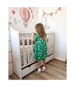 Postieľka s otvoreným (lamelovým) dizajnom poskytuje vynikajúce vetranie a umožňuje rodičom neustále sledovať svoje dieťa zo všetkých strán. Tento dizajn podporuje bezpečnosť a pohodlie dieťaťa, čo je obzvlášť dôležité pri prevencii syndrómu náhleho úmrtia dojčiat (SIDS). Naše postieľky majú široké, obdĺžnikové tyče, ktoré sú pevnejšie a odolnejšie ako tradičné okrúhle. Ich tvar poskytuje lepšiu oporu pri učení sa stáť a umožňuje malým ručičkám dieťaťa ľahšie sa na ne oprieť, čím sa zvyšuje pohodlie a bezpečnosť. Vzdialenosť medzi tyčami je 6 cm, čo spĺňa požadované bezpečnostné normy a chráni dieťa pred rizikom uviaznutia.