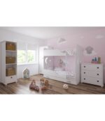 Kolekcia HVIEZDA Kombinuje praktické riešenia s jemným, detským nádychom. Biele predné časti sú zdobené jemnými výrezmi v tvare hviezdy, ktoré slúžia ako dekorácia aj ako úchytka – esteticky príjemné a bez zbytočných vyčnievajúcich prvkov. Nábytok je k dispozícii s vrchnými doskami v piatich farbách, takže ho ľahko zladíte s vaším interiérovým štýlom.