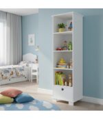 - Má štyri otvorené police, ideálne na knihy, hračky alebo dekorácie.