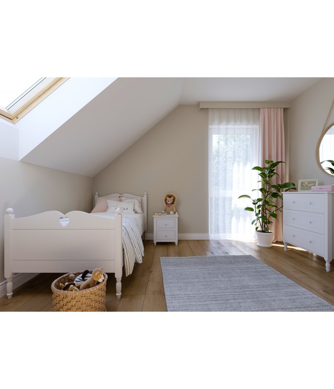 Dokonalá zmes klasickej elegancie a funkčnosti. Jeho nadčasová biela farba a decentný dizajn ho robia vhodným do izieb pre batoľatá aj tínedžerov.