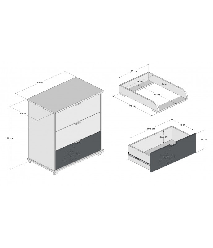 • Možno objednať s prebaľovacím pultom, ktorý je možné kedykoľvek vybrať – vďaka tomu môže nábytok rásť s dieťaťom a časom môže fungovať ako klasická komoda.