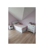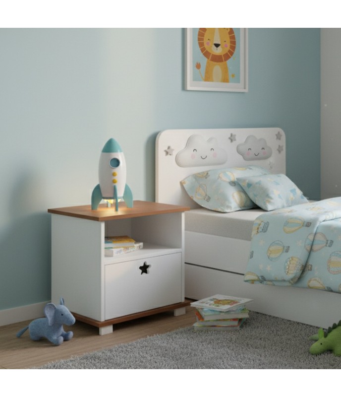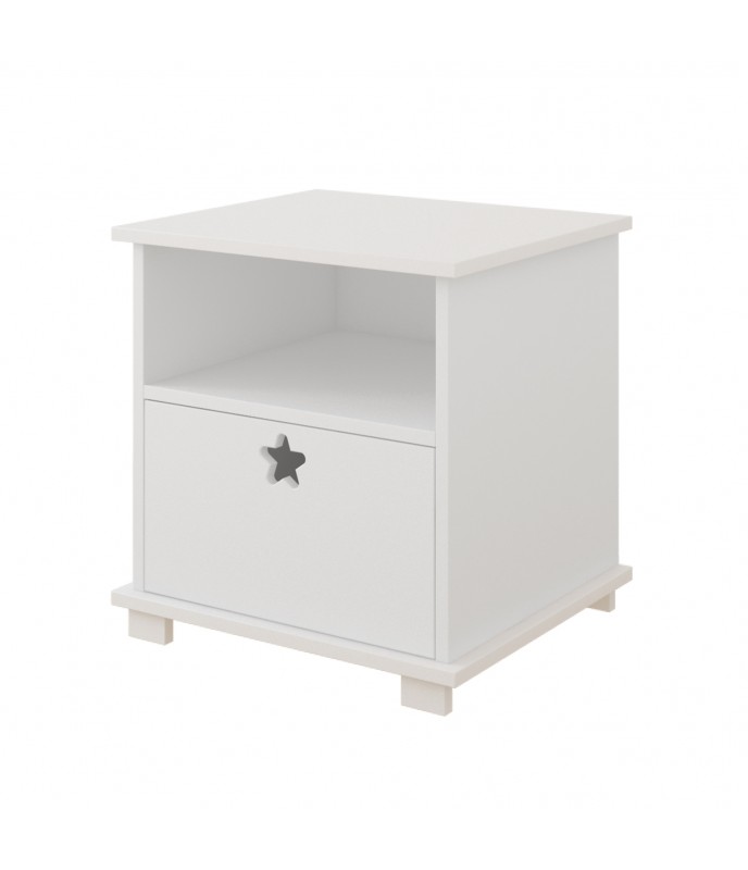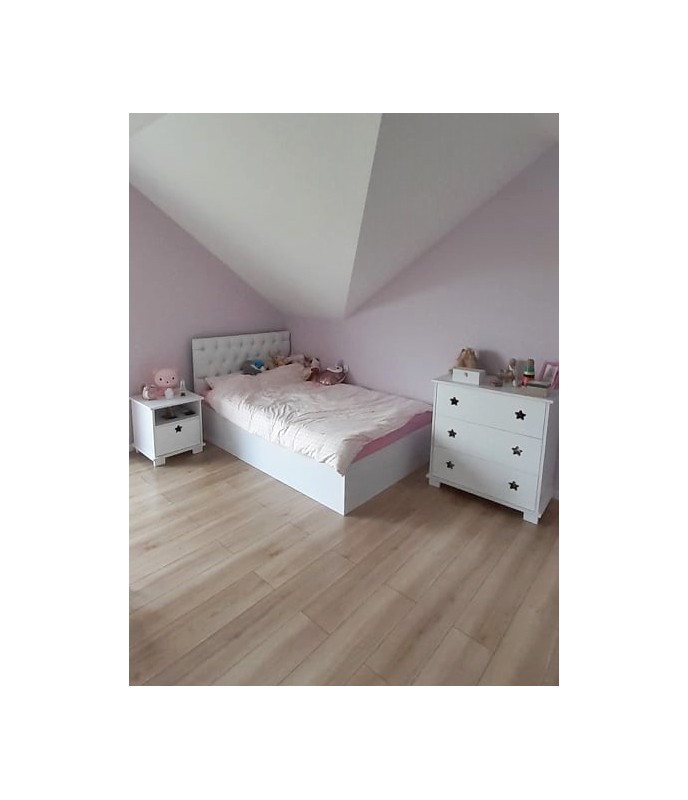 Kolekcia HVIEZDA kombinuje praktické riešenia s jemným, detským nádychom. Biele predné časti sú zdobené jemnými výrezmi v tvare hviezdy, ktoré slúžia ako dekorácia aj ako úchytka – esteticky príjemné a bez zbytočných vyčnievajúcich prvkov. Nábytok je k dispozícii s vrchnými doskami v piatich farbách, takže ho ľahko zladíte s vaším interiérovým štýlom.