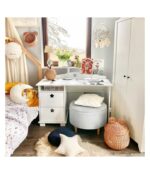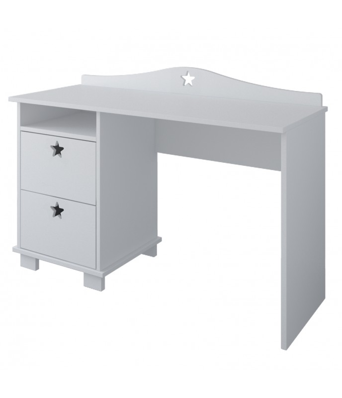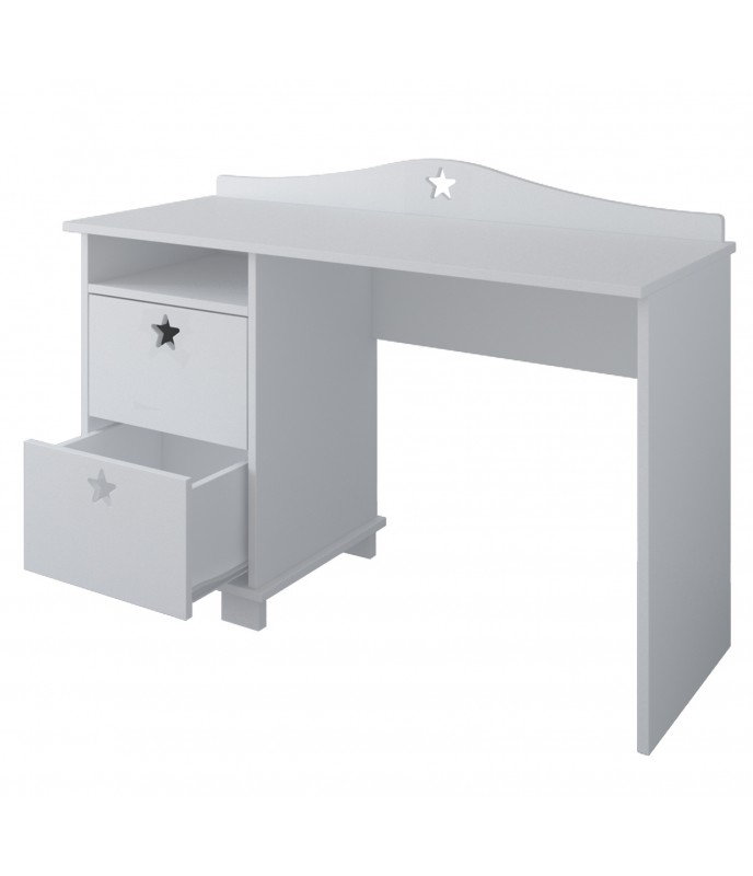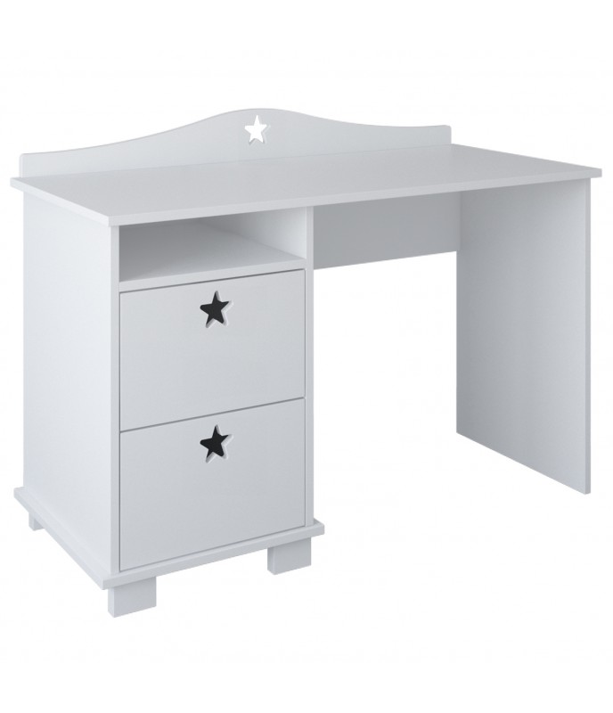 Kolekcia HVIEZDA Kombinuje praktické riešenia s jemným, detským nádychom. Biele predné časti sú zdobené jemnými výrezmi v tvare hviezdy, ktoré slúžia ako dekorácia aj ako úchytka – esteticky príjemné a bez zbytočných vyčnievajúcich prvkov. Nábytok je k dispozícii s vrchnými doskami v piatich farbách, takže ho ľahko zladíte s vaším interiérovým štýlom.