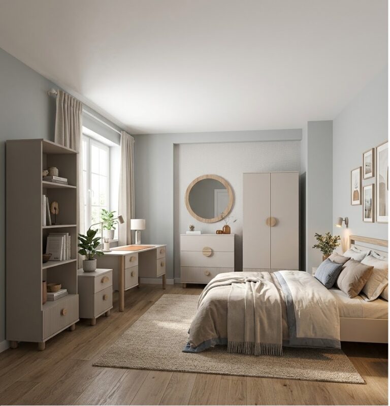 - Korpusy a predné strany: laminovaná drevotrieska – odolná a ľahko sa čistí