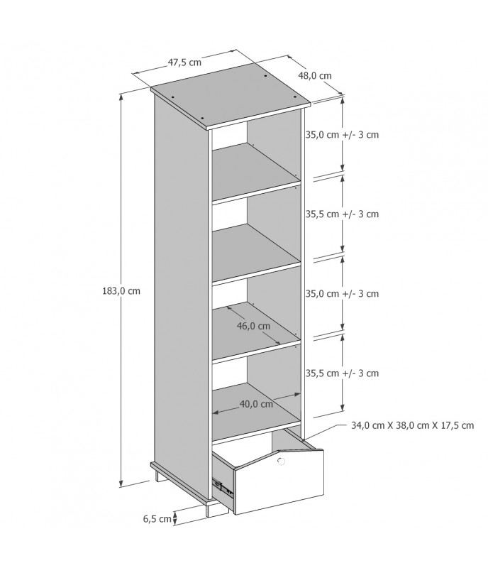 • Má štyri otvorené police, ideálne na knihy, hračky alebo dekorácie.