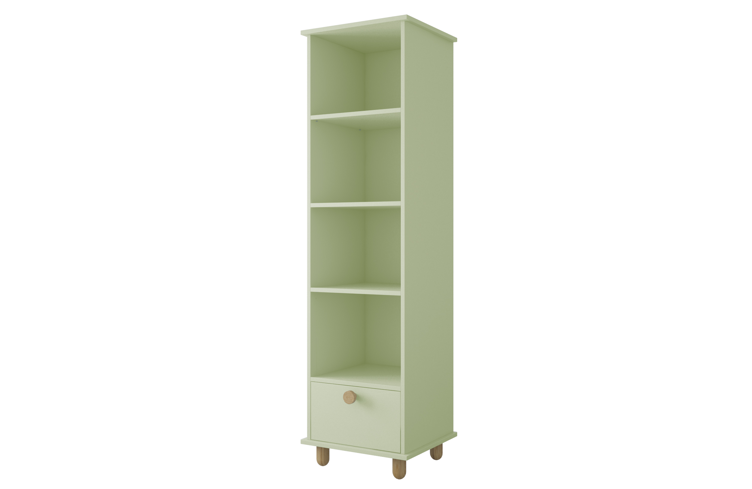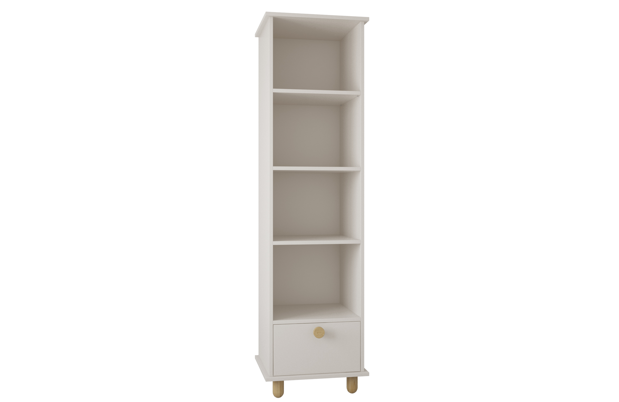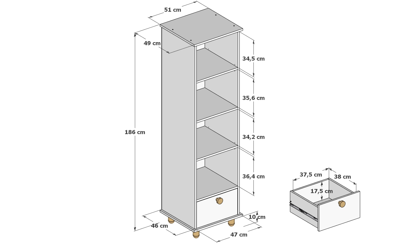 – Má štyri otvorené police, ideálne na knihy, hračky alebo dekorácie.
