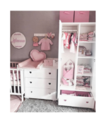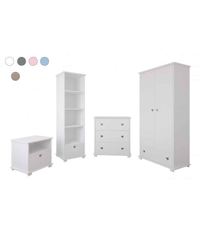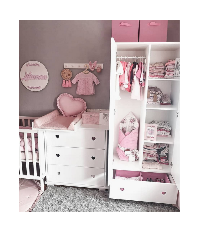 Kolekcia SRDCE Kombinuje praktické riešenia s jemným, romantickým nádychom. Biele predné časti sú zdobené jemnými výrezmi v tvare srdca, ktoré slúžia ako dekorácia aj ako úchytka – esteticky príjemné a bez zbytočných vyčnievajúcich prvkov. Nábytok je k dispozícii s doskami stolov v 5 farbách, takže ho ľahko zladíte s vaším interiérovým štýlom.