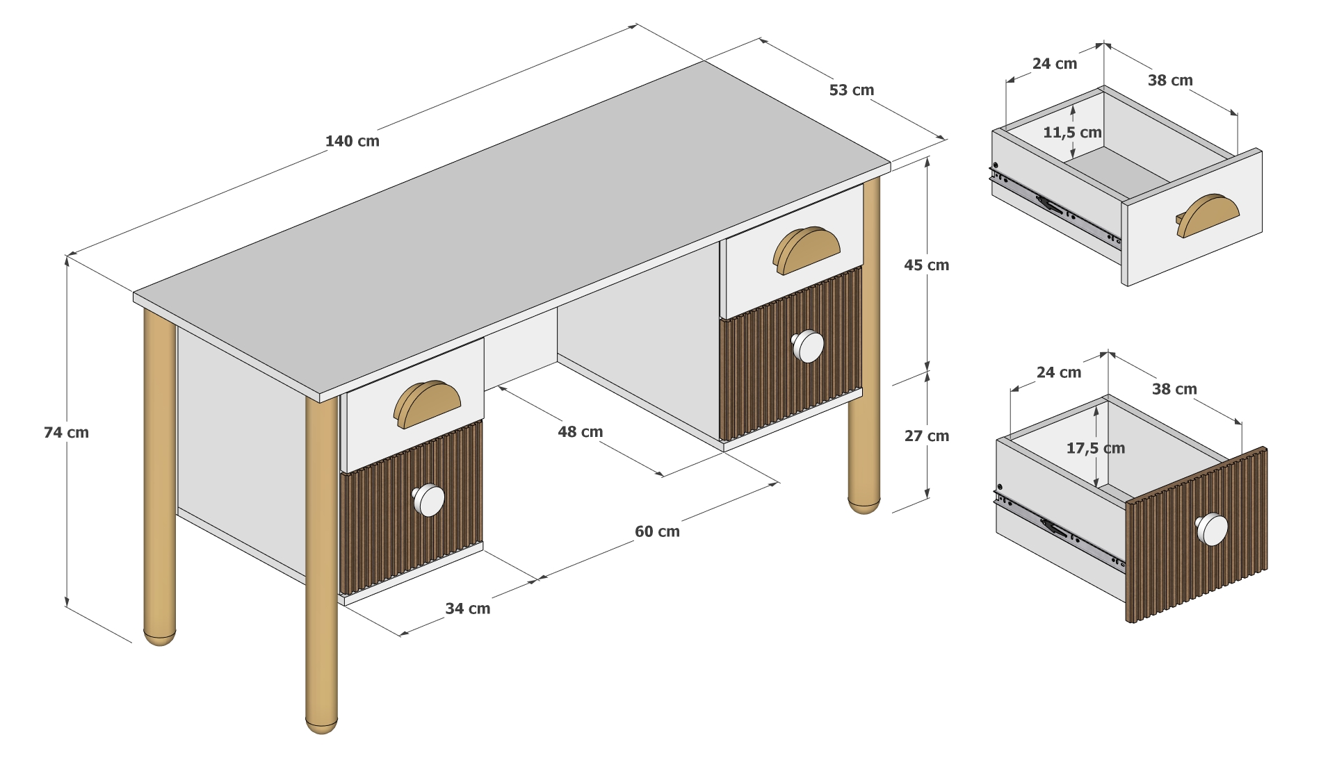 🧩 Stôl so štyrmi zásuvkami