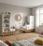 • Možnosť objednať s prebaľovacím pultom, ktorý sa dá kedykoľvek rozobrať – vďaka tomu nábytok rastie s dieťaťom a časom môže fungovať ako klasická komoda.