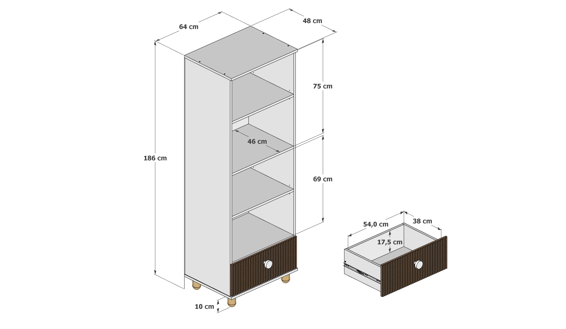•Má štyri otvorené police, ideálne na knihy, hračky alebo dekorácie.
